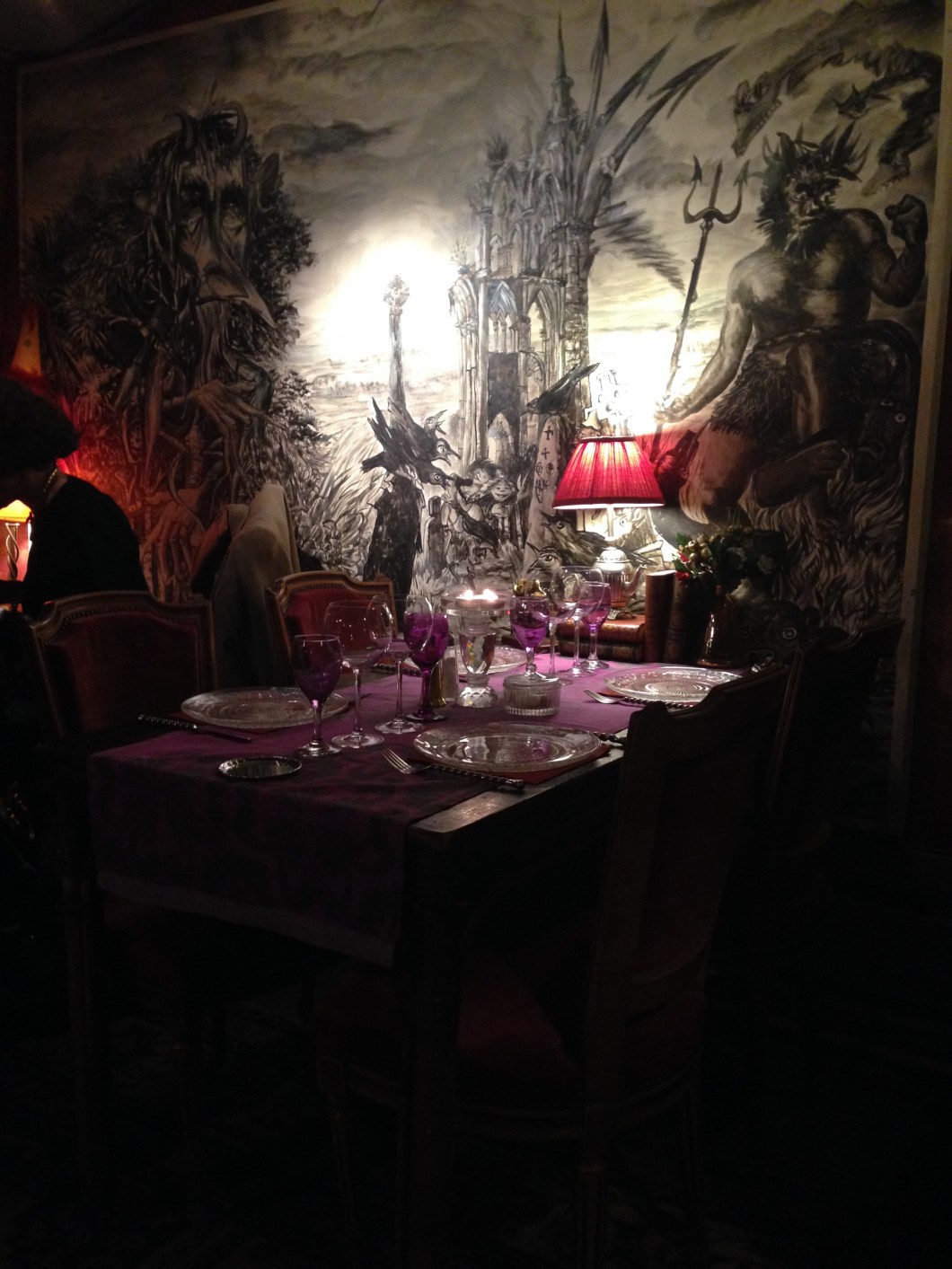 In the evening the choice of eaterie is unsurpassed. We were lured in to La Nef des Fous with it’s leopard print golden thrones, Dantes inferno style wall murals and a decor topped off with goats heads and gramophones but overall it was bat-shit insane chic. Loved it! We had pea soup with crispy fried onions, cassoulet and local sausage and it was epic.