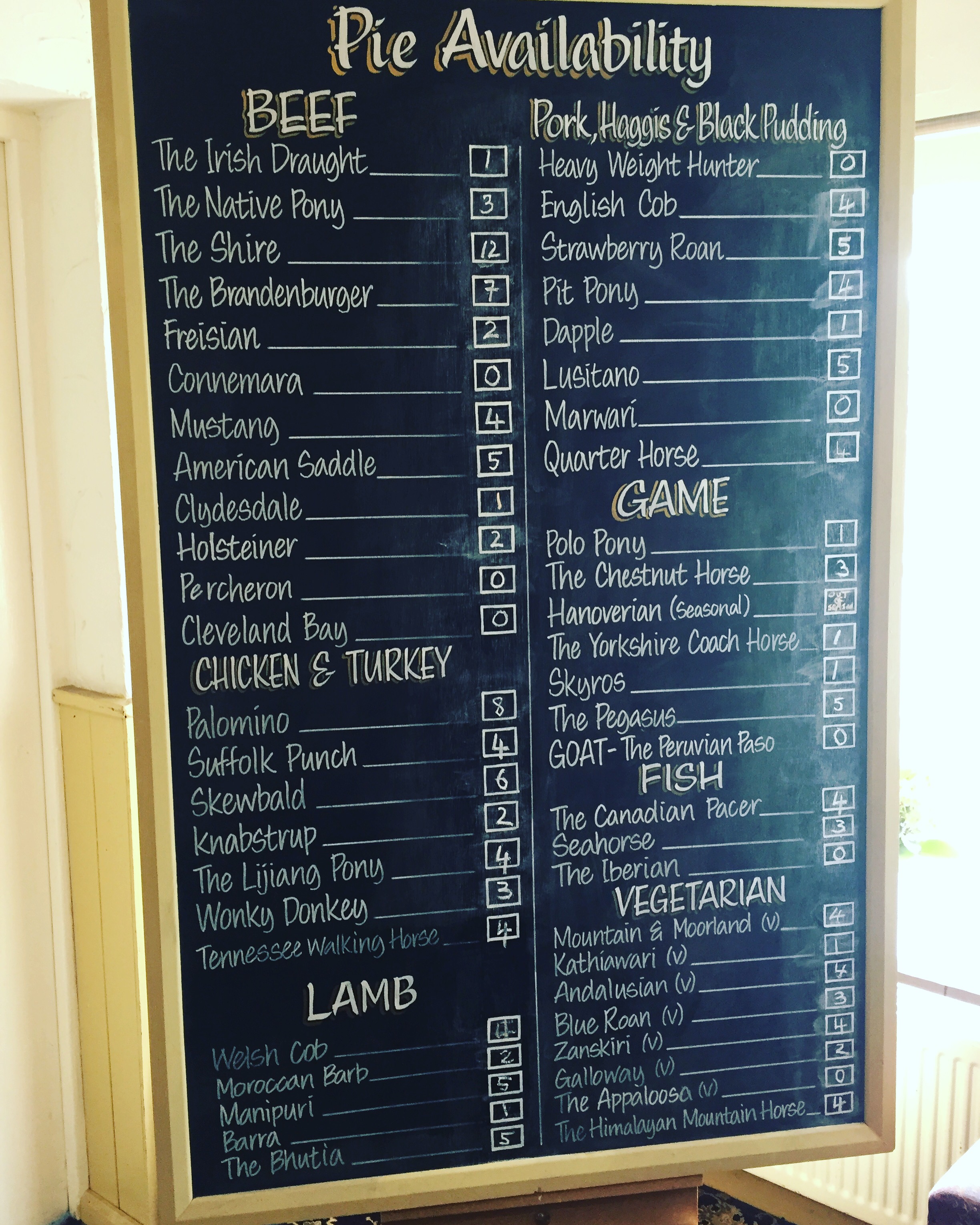 I had the pie of my life (and I am no stranger to pie), Rabbit with black olive sauce. O.M.G! It was like having Greek rabbit Stifado in pie form. I wept a little meaty tear at its beauty. The Piebald in at Hunmanby is fabulous, and Dog friendly too, highly recommended.