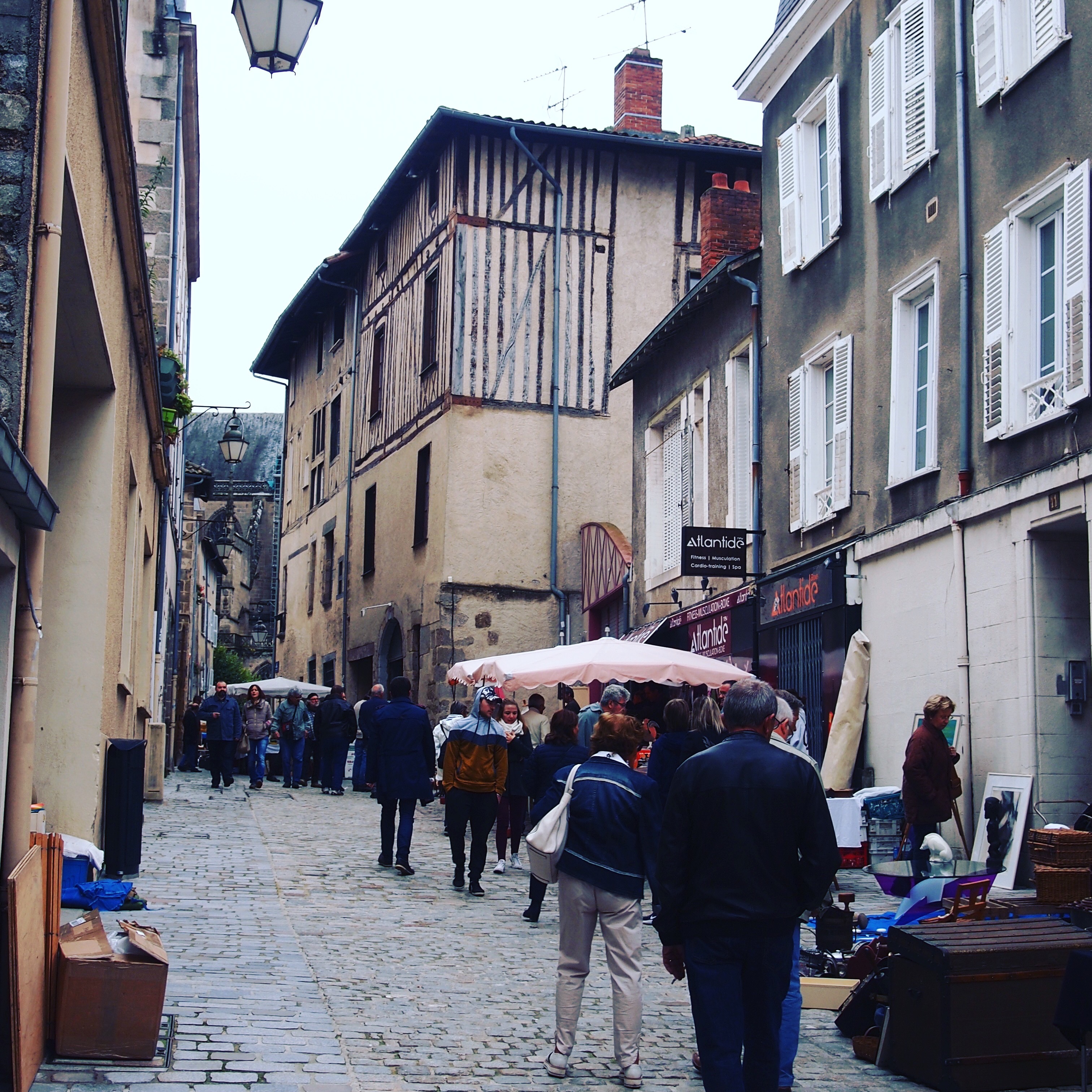 We were impressed by the size of the market, took us about 2 hours to take it all in. There was a good range of stalls, lots of old agricultural equipment, furniture, rugs, chandeliers, plenty of Limoges porcelain as you would expect. We had a good old rummage.