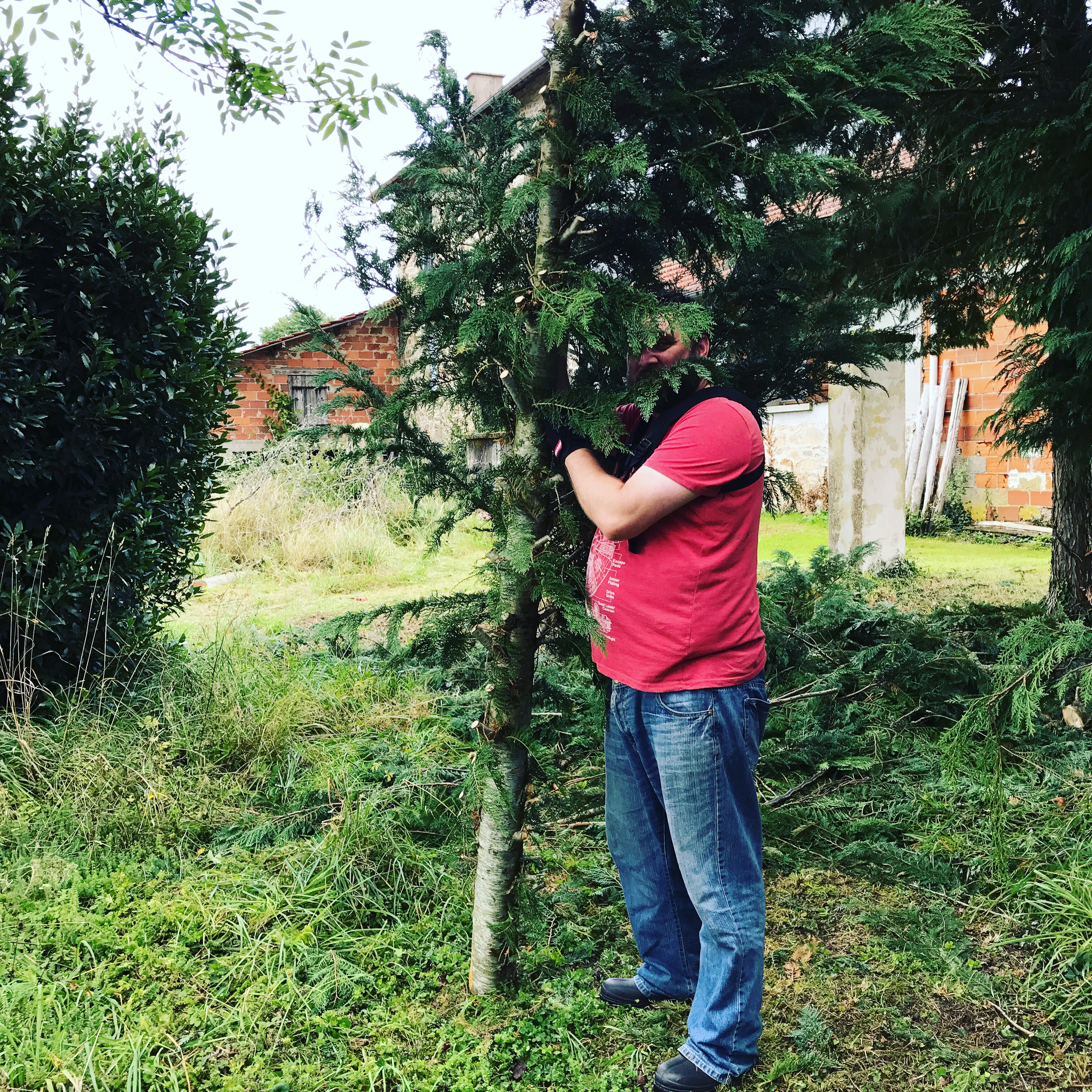 I started to strip the branches off some of the fallen trees with my heavy duty secateurs. By the end of the day I could barely hold a cup of tea, I had no grip strength at all. Most feeble!