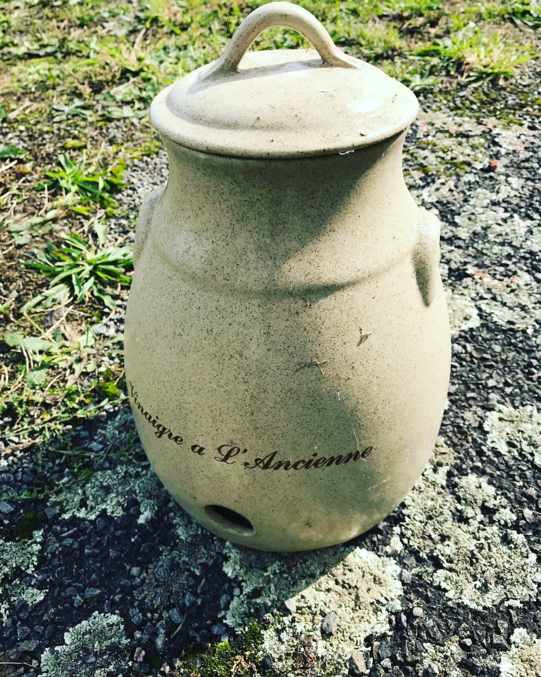 My lovely Mum in Law found a really cool stone-ware vinegar jar in the cellar which I think I’ll use for onions and garlic. I like it a lot.