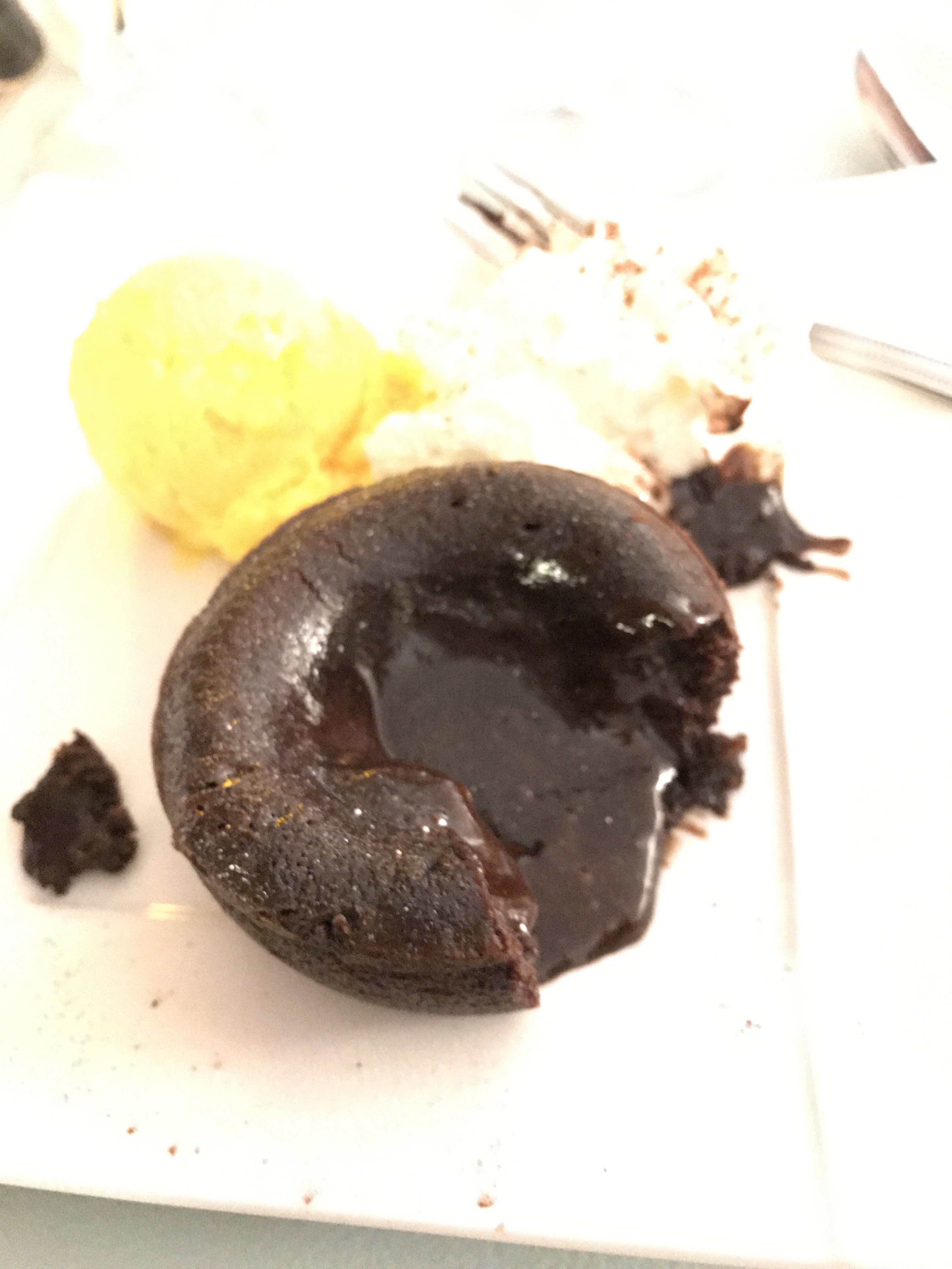 For some reason photos are uploading in the wrong order, but I’m in the airport with ropey wifi so hard cheese. Zoella wouldn’t pull this nonsense… anyhow, please see the chocolate fondant and orange sorbet that dreams are made of.