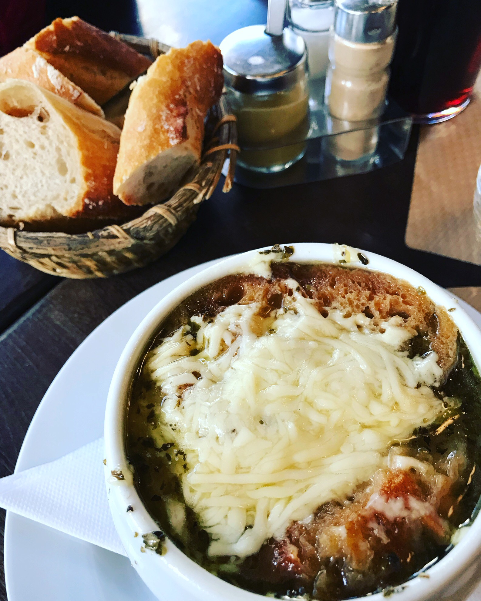 We wandered around for a while, stopped for my first (but not last) onion soup of the week, and a hot chocolate to warm up. Big cheesy gruyere covered crouton on the top, oh yes!