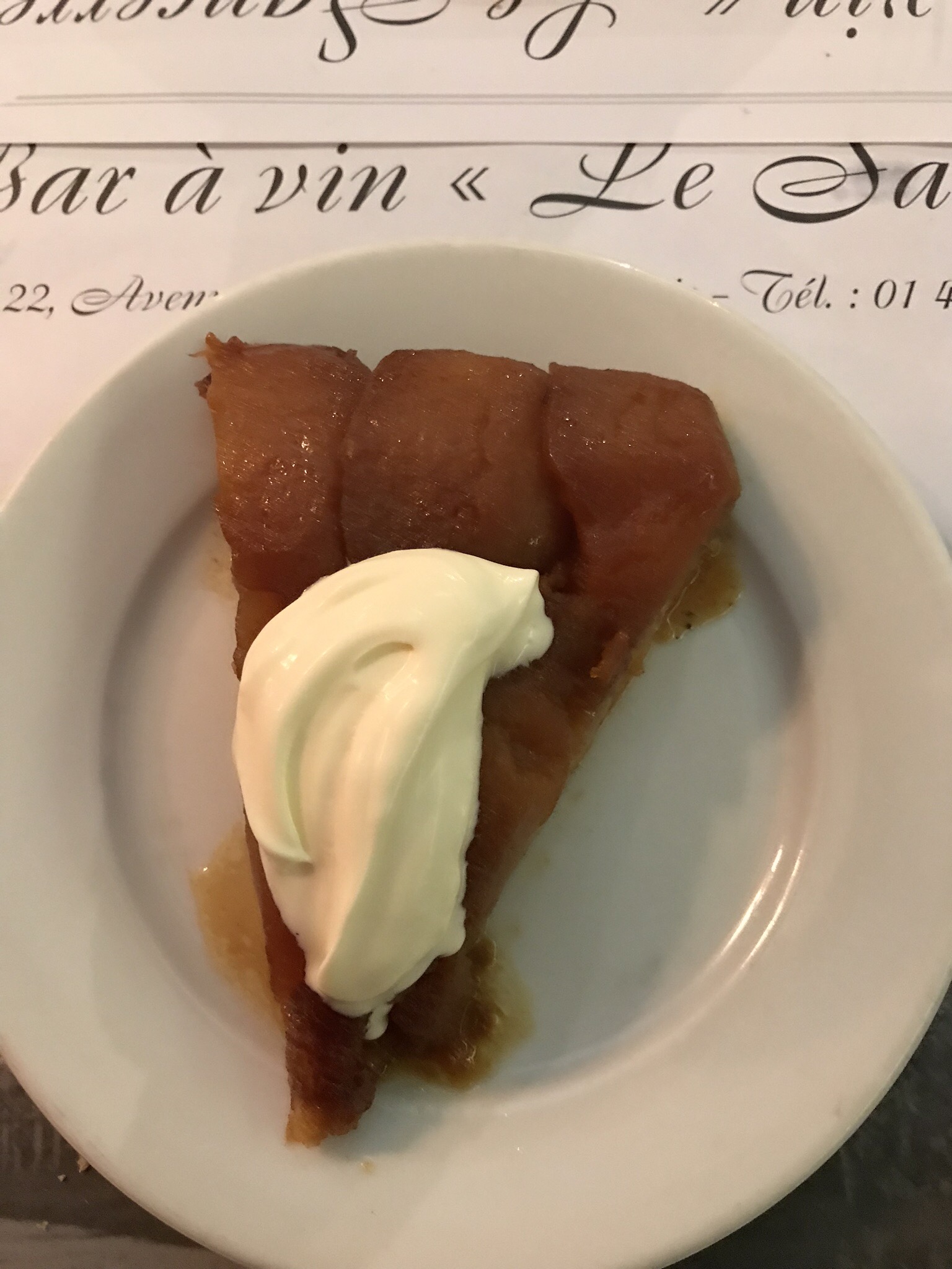 We grimaced through the wine, and an episode of French Eastenders (we think someone died, not entirely sure) and ordered tarte tatin for dessert. Ping, back in the microwave it went, served at the temperature of Satan, the roof of my mouth is still sore. But it was good, albeit a bit flabby from the microwave.