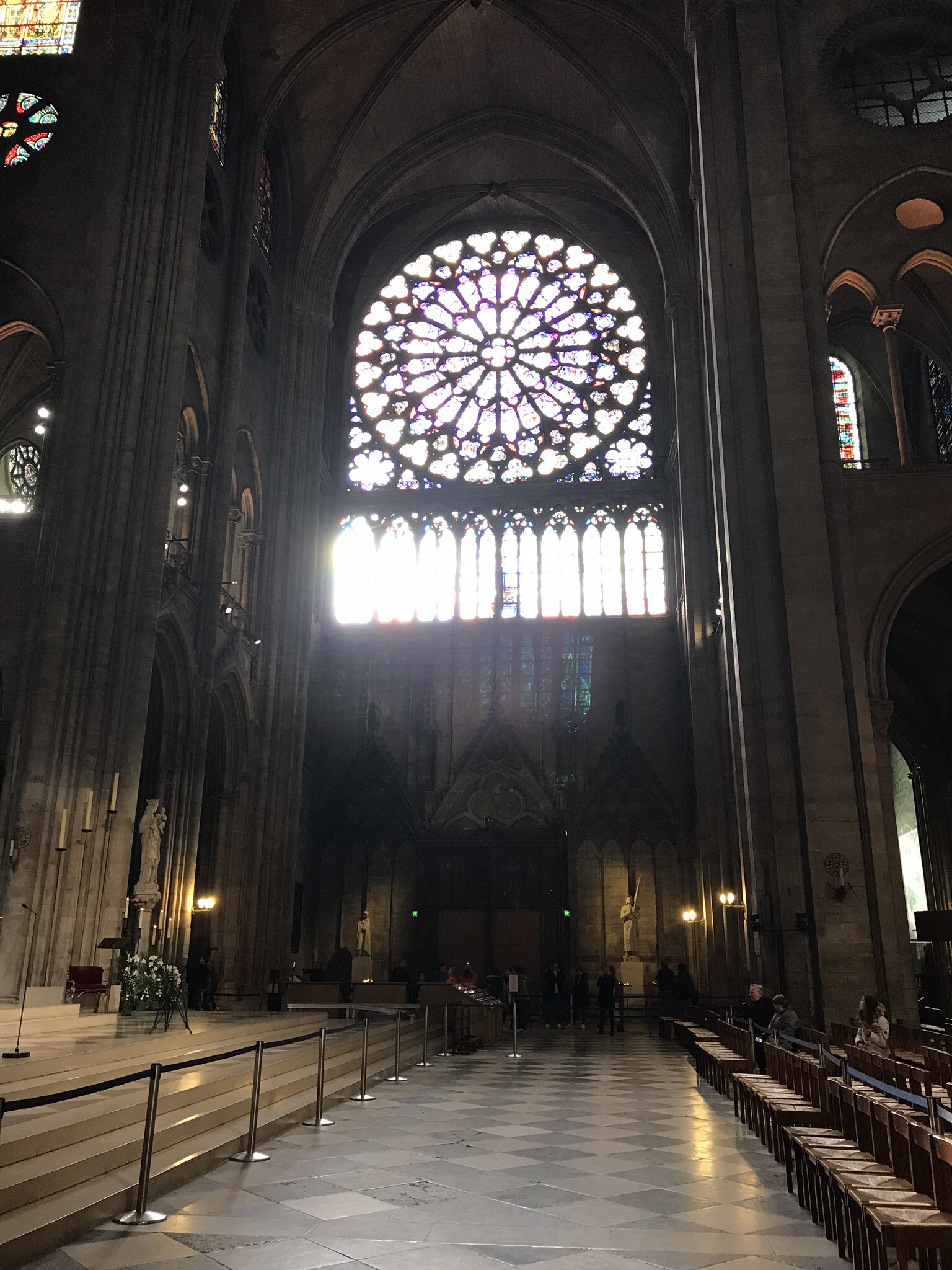 Lunch done, and some colour in the cheeks from the Chablis, next stop Notre Dame. It literally was just one stop away and immediately visible in all it’s glory from the Metro station steps. It is quite a sight. Beautiful blue skies really set it off and then the bells began to ring, perfect timing. The first thing I really noticed were the rats. You heard me, rats. Big ones, at least 6, scampering around the low areas of box-hedge between the benches enjoying the sun. I quite like things of a rodent persuasion so I head straight for them with the camera as a couple of tourists squeal and head the other way. Fingers crossed the pictures are retrievable because I think I got a good one of ratty playtime. Other things of note included the man cycling about with a magnificent golden live chicken in his bicycle basket, for reasons unknown……