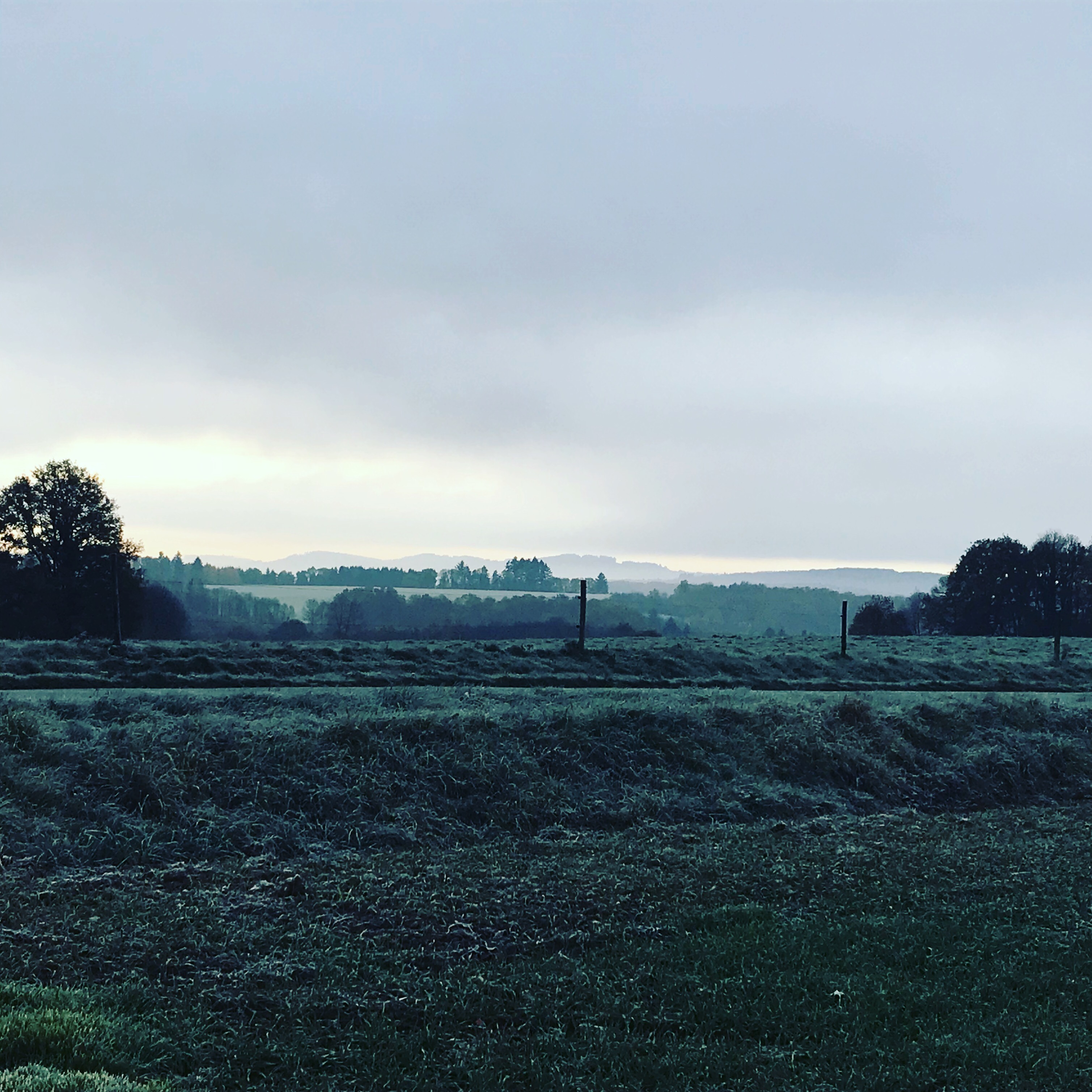 As ever, properly morngy in Limoges airport ready to fly home. Beautiful frosty morning today, mist hanging in the trees, very noisy bull in the field out front. He was properly carrying on. He was focused very intently on the farm down the road so I think he may have been bellowing for num nums.