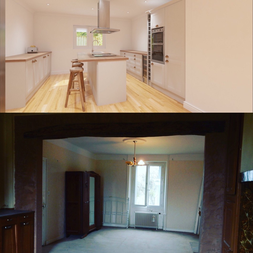 The reclaimed wood has been delivered in France and the floor proper is going in next week so that’s exciting too. The old kitchen sink and cupboards have been taken out as well so progress is being made.