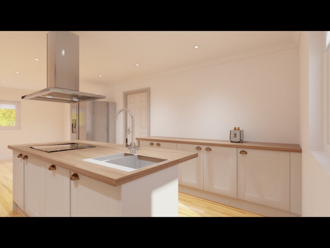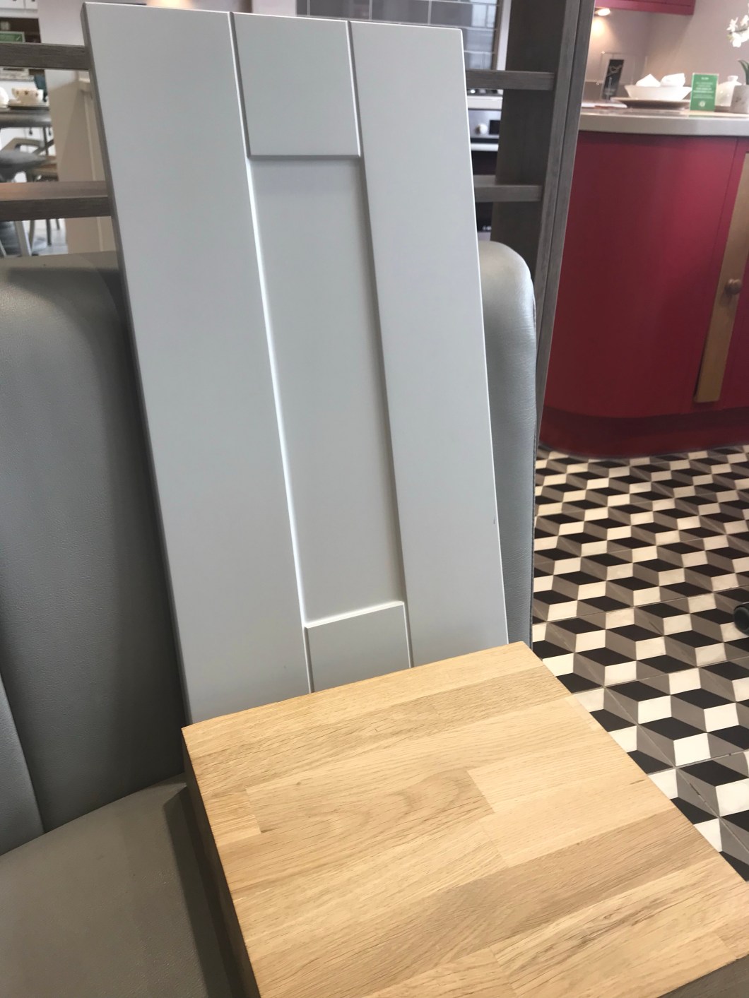 The cupboard style and colour and the worktops. Will be darker once oiled.
