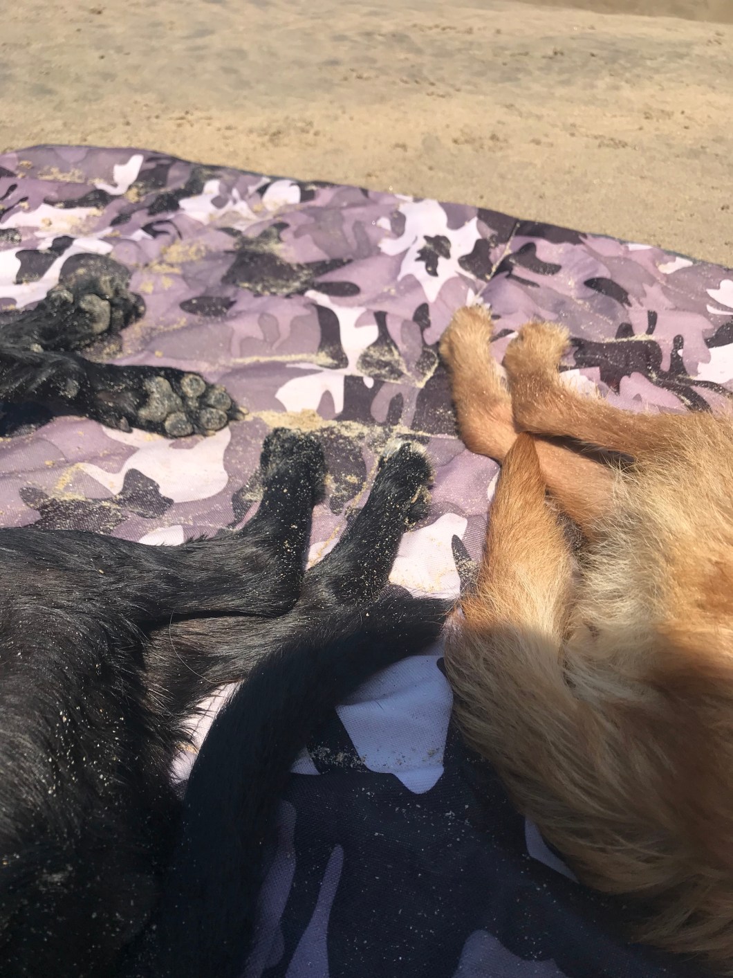 We took Freya for her first proper trip to the beach. It was clear she hadn’t seen the sea before and was really uncertain about the water. But with some time she would dip her toes in and now we can get her into the reservoir up to her knees which was previously unheard of. I don’t know if we’ll ever have a swimmer but she’s definitely getting there. She also had her first free run, one unplanned as she slipped her harness, the second and third we had squeaky toys, garlic sausage and the dog whistle. We all spread out on the quiet open beach and each called her to run between us and she was brilliant, so proud of her. It’s still a long way from letting her off in the woods but she’s doing so well. It’s beautiful to see her running zoomies on the beach. Shelly is just the ultimate beach dog, he adores it. We discovered if you pick him up when he’s swimming his little legs keep paddling when he’s up in the air. Just adorable!! Cleo was quite happy trotting backwards and forwards on the beach and laying in the sun. It was the same beach we took her to on our first camping holiday together pretty much 7 years to the day ago. I wonder if she remembers? They were all exhausted at the end of the day with all the swimming, paddling and sunbathing, it’s a hard life!