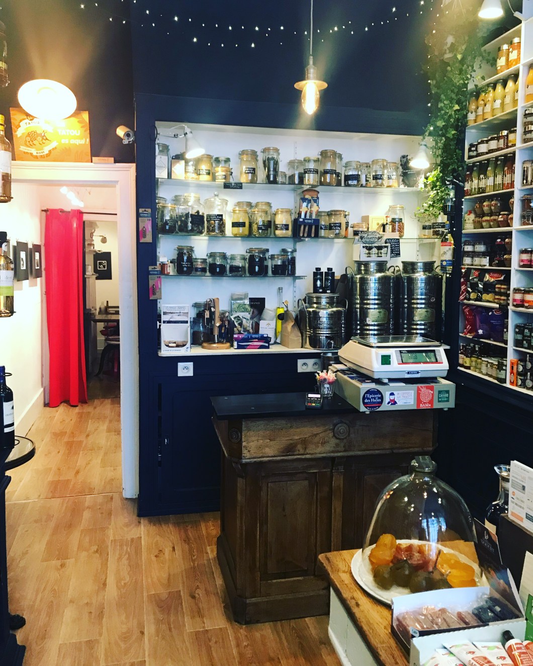 A blackboard on the door said Pate de Pomme de Terre and salad €8.50. Go on then! We weren’t sure where you ate but assumed it was in the back. We were led through a curtain and into essentially the stockroom, which in turn led onto the kitchen.