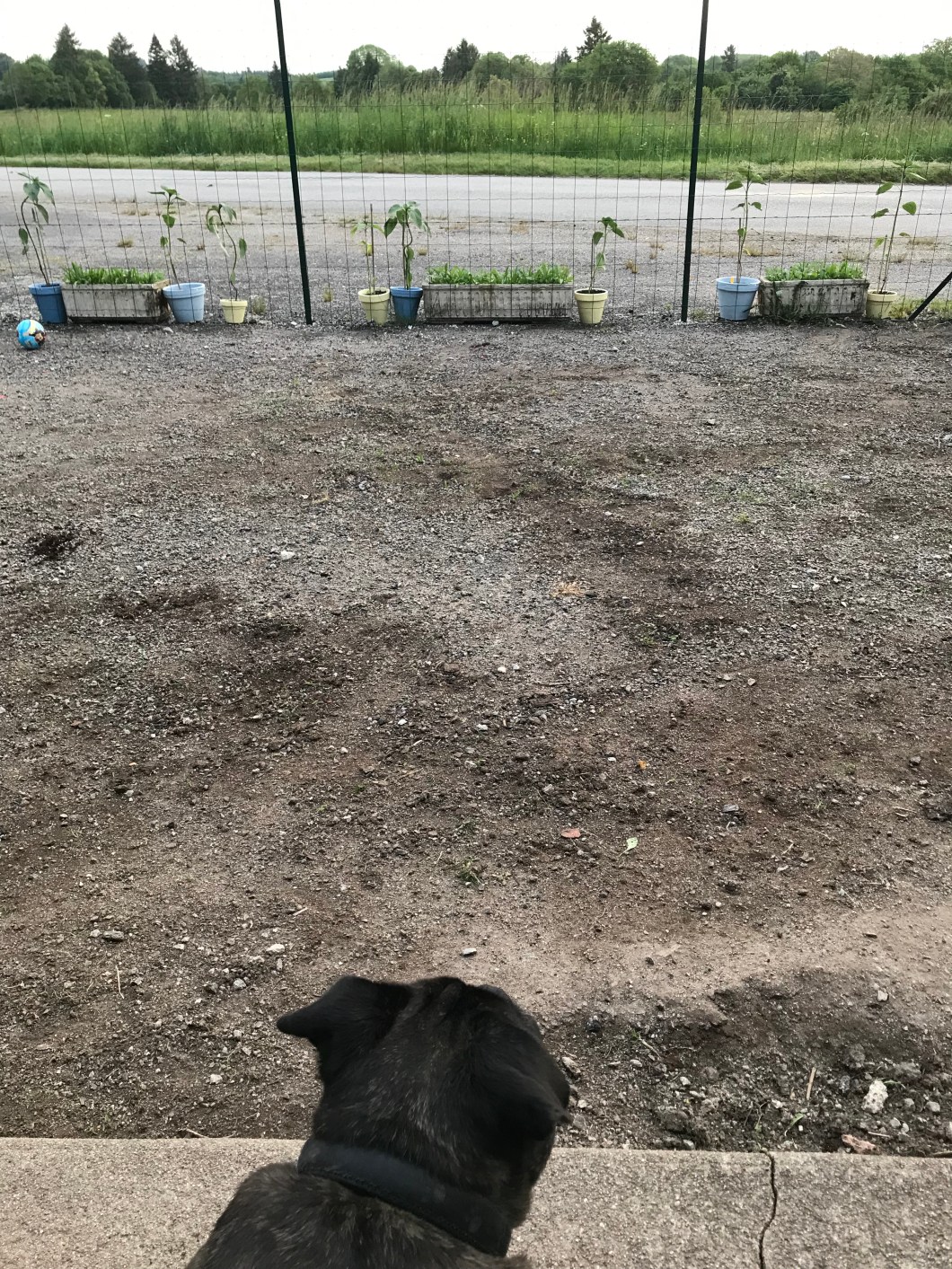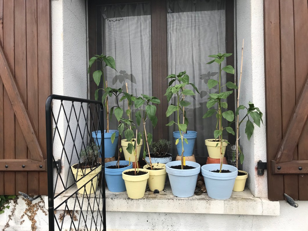 As for what else is going on, finished weeding out front, and moved all my sunflowers to outside the perimeter fence, to sit between the troughs I’ve planted with wildflowers from the seeds Craig brought me back from Greece. Should look pretty when everything starts to flower. I’ve moved the boards I’d used to cordon off the roof tile danger area, the dogs were jumping over it anyway and we know not to sit under there. Still waiting for a devis to get it fixed from the roofing company down the road. At least everywhere looks a bit more tidy out front.
