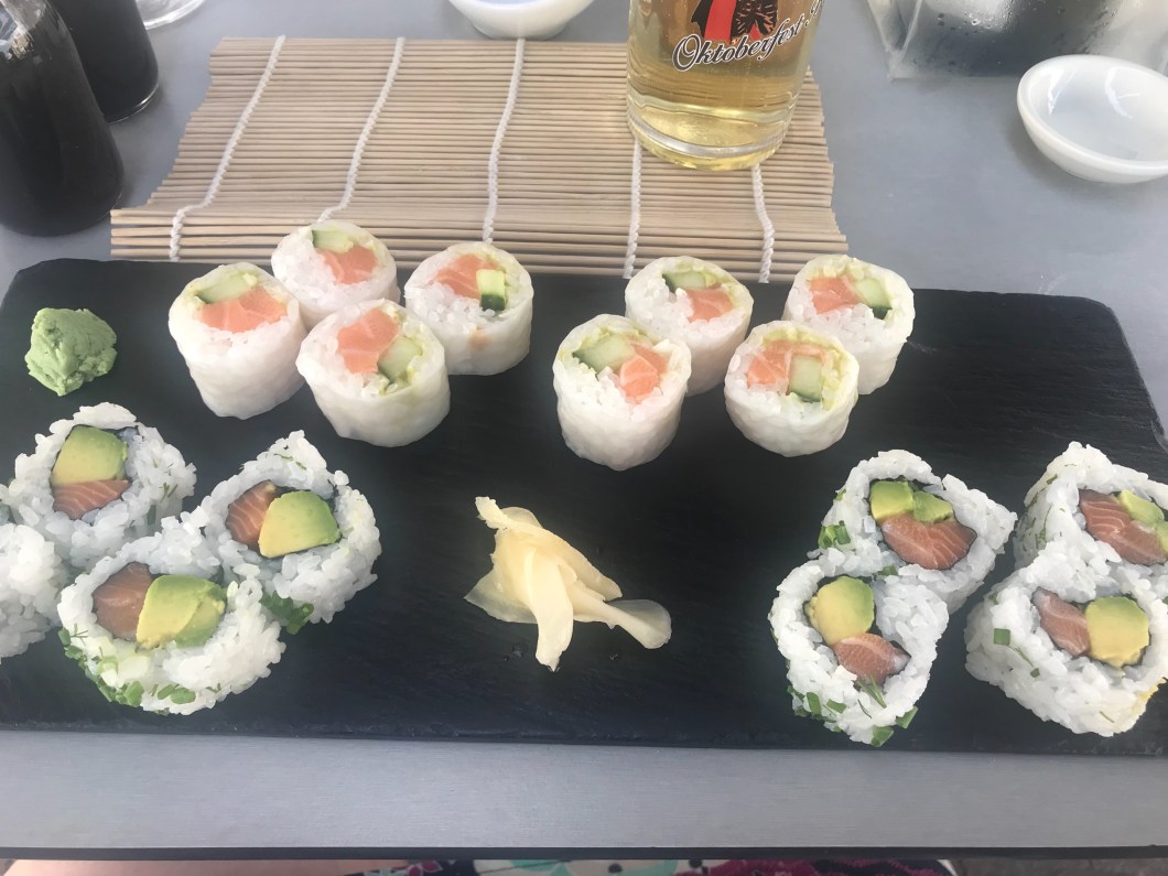 On our walk back round the marina, we spied a sushi place called Hattori. Now usually we don’t get to eat sushi, hubs hates fish, and I don’t eat meat, so finding somewhere that suits both of us is hard. But this place was great. We ate outside, we had great service, and hubs had a pretty new experience because he could order roast chicken sushi which he said was delicious. My California rolls were also great, and we found everything to be pretty reasonably priced, super fresh and tasty. Also loved the Kill Bill theming, hubs sushi was called the Black Mamba.