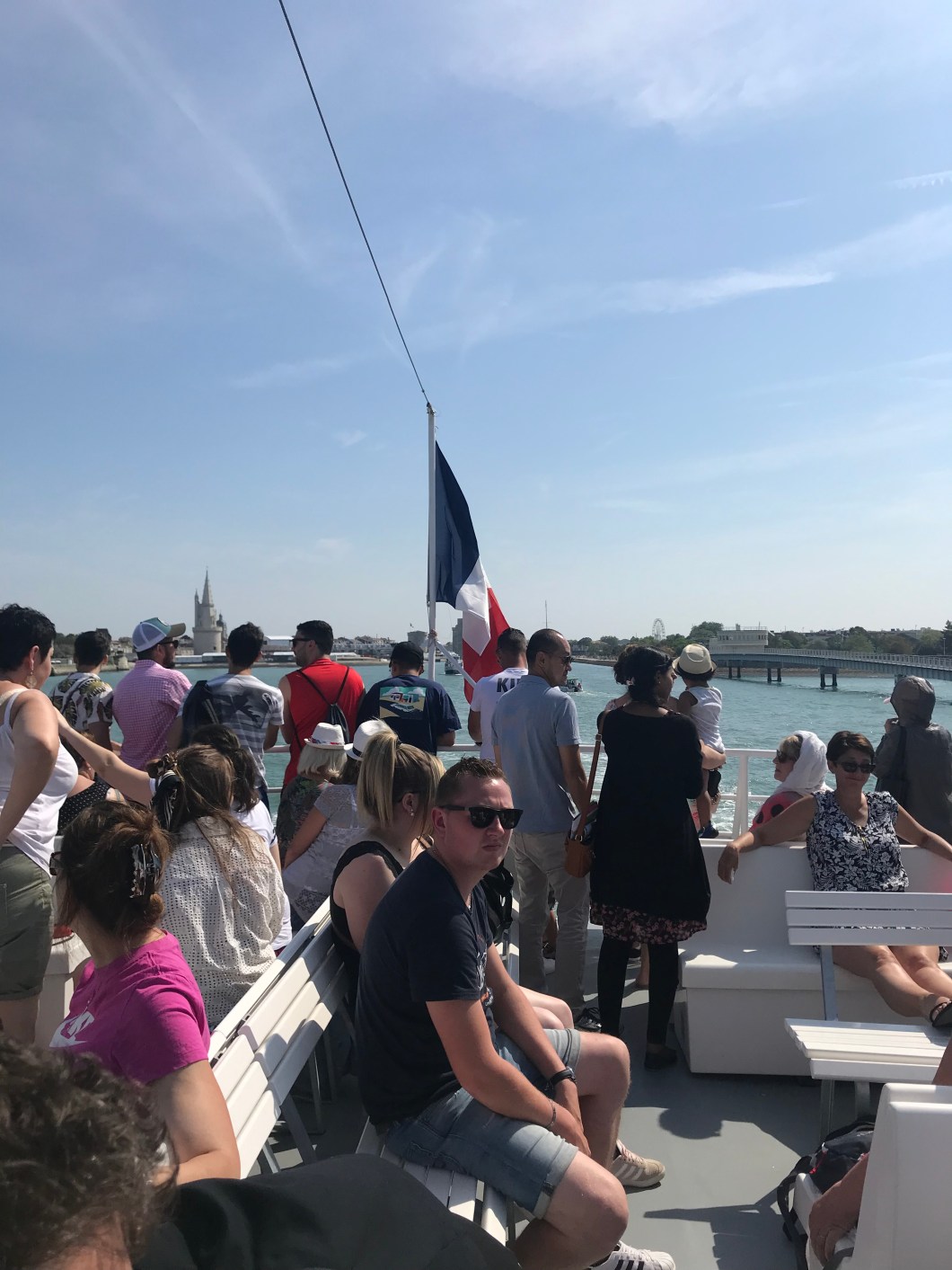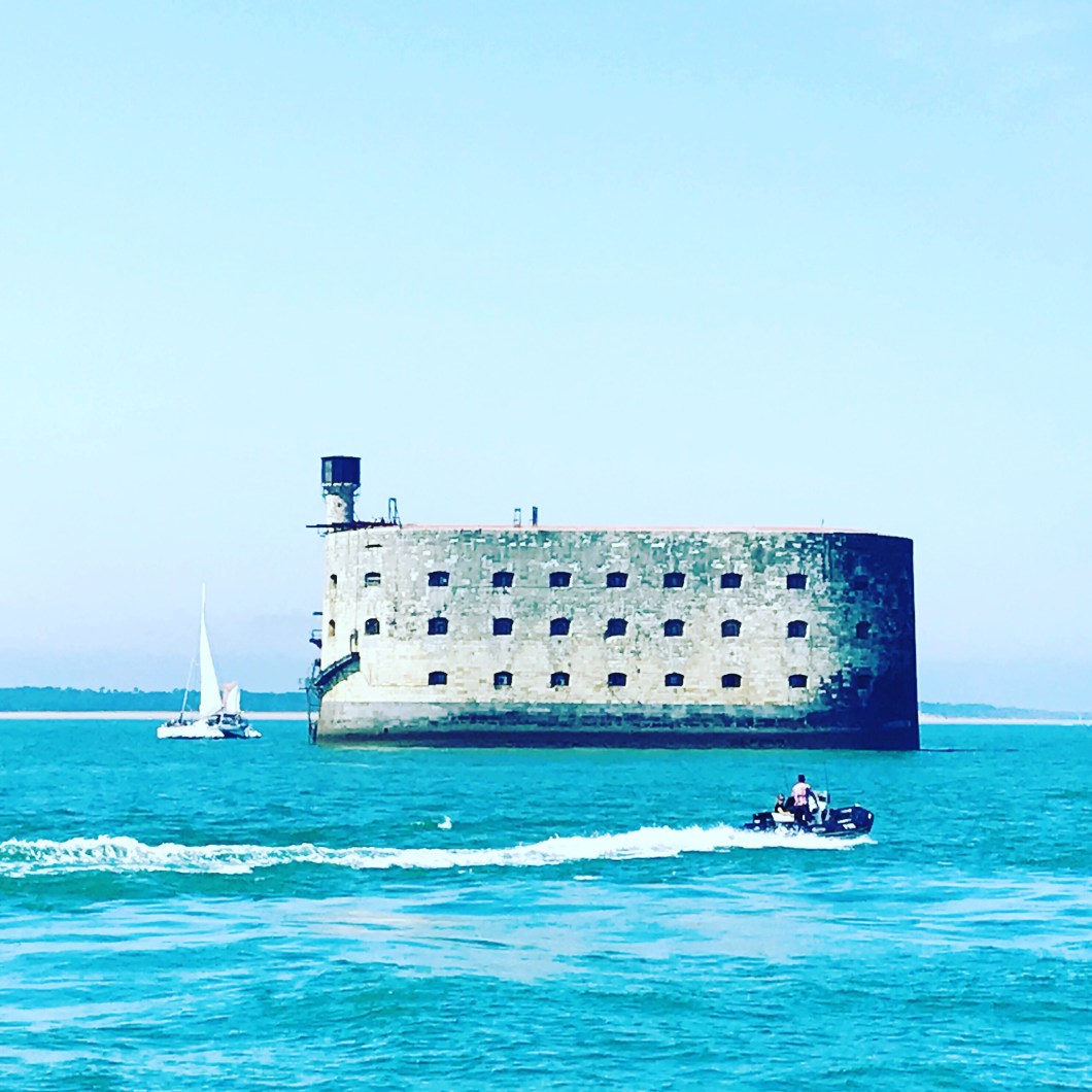 Here’s a tip, it was a scorching hot day and we were one of the last to board, so the open upper deck was busy. On a central seat, I ended up with photography mad tourist, lunging about with one foot on the seat, with his arse an inch from my face, plus it was too blooming hot in the sun. So, head downstairs into what will probably be an empty air conditioned saloon. There are 2 booths towards the rear with opening windows, bag one of these (left side is better), travel in comfort, and get a great view of Fort Boyard on that side as the boat circles. This boat also acts as a ferry to Isle d’Aix, which looks gorgeous, the majority of tourists will get off, then you can travel back to harbour on a much less crowded upper deck. Perfect.