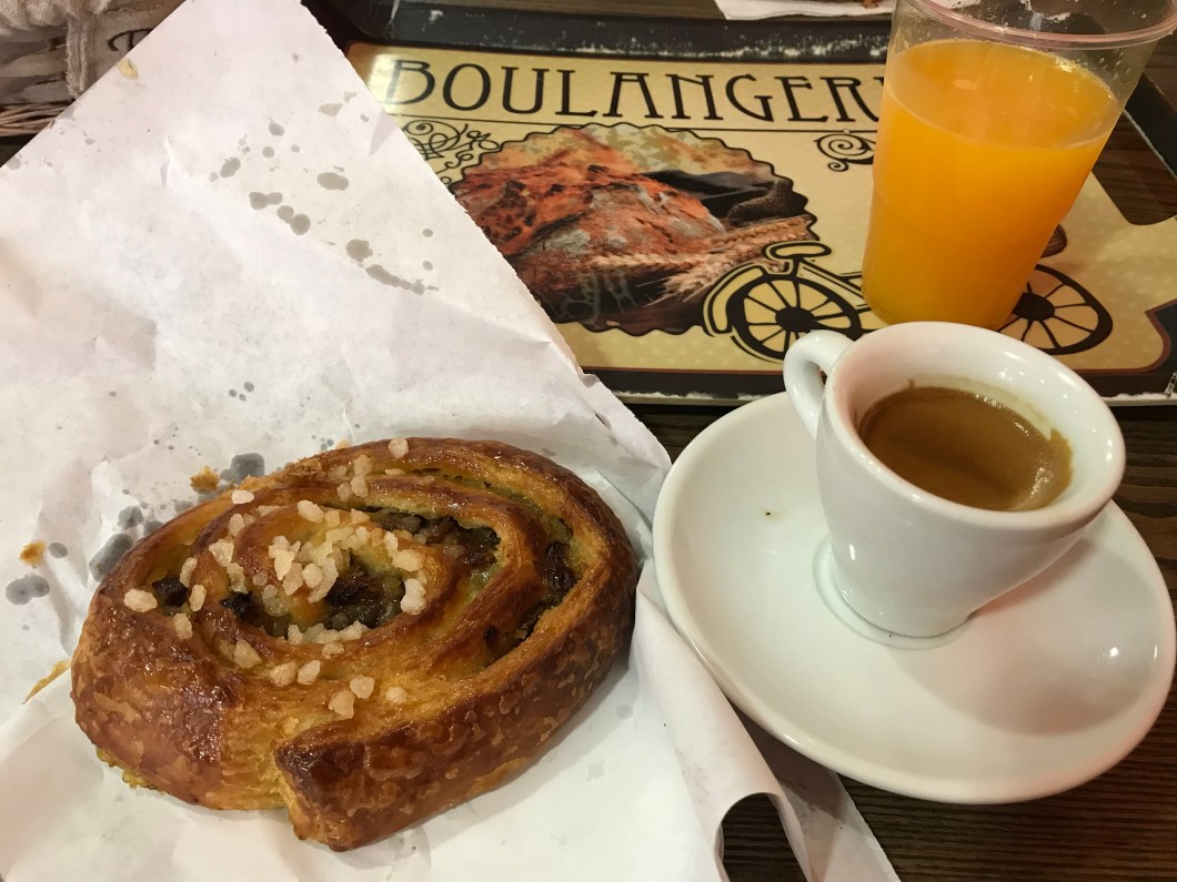 2 excellent coffees, 2 huge pastries and a freshly squeezed juice €6 each