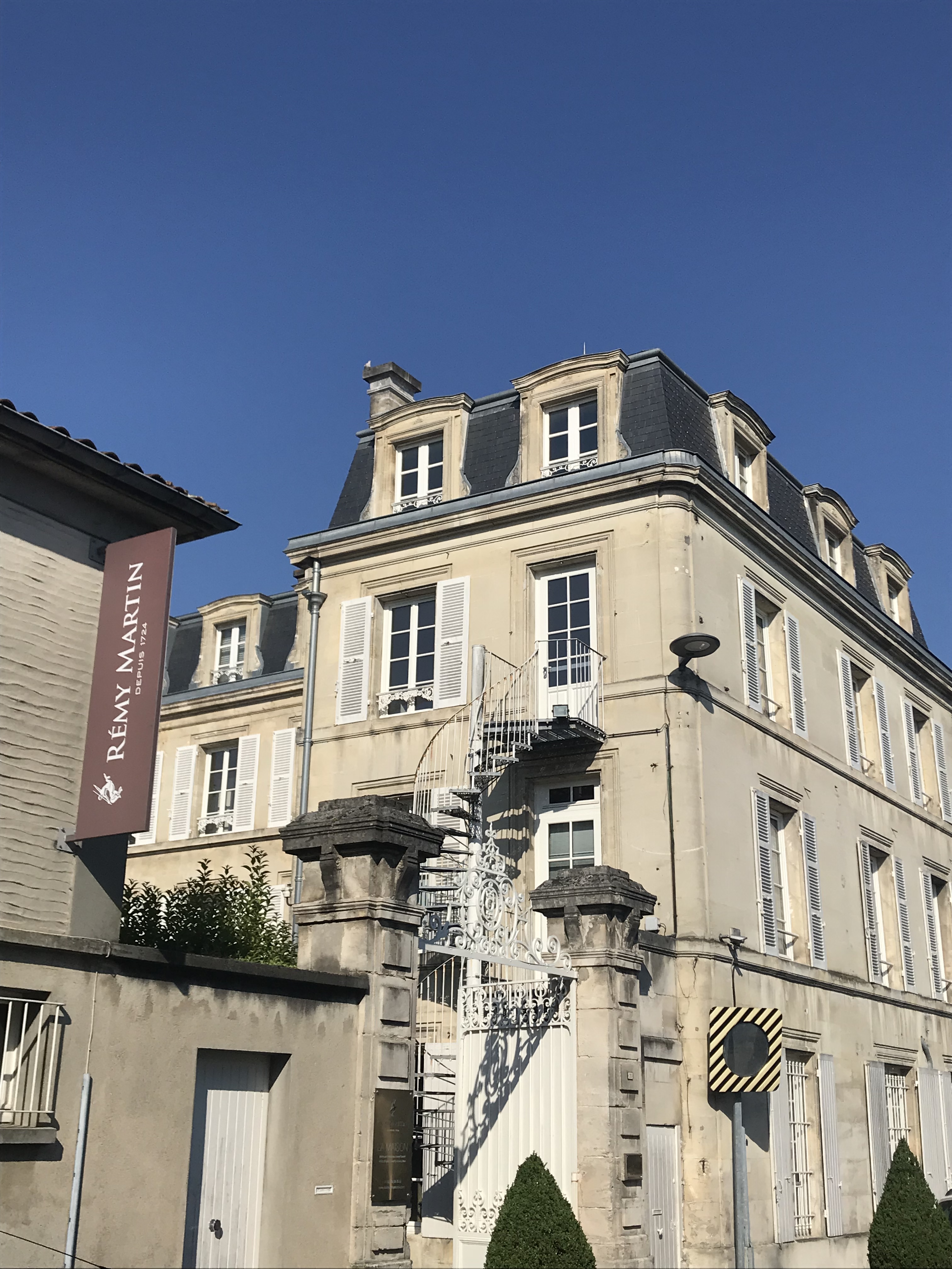 Remy-Martin is housed in a handsome small chateau in the centre of town. Lovely white shutters, beautifully clipped box hedge and vines climbing the walls, elegant, perfectly French, and giving just a hint of the generations of skill and tradition that goes into the Cognac’s production.