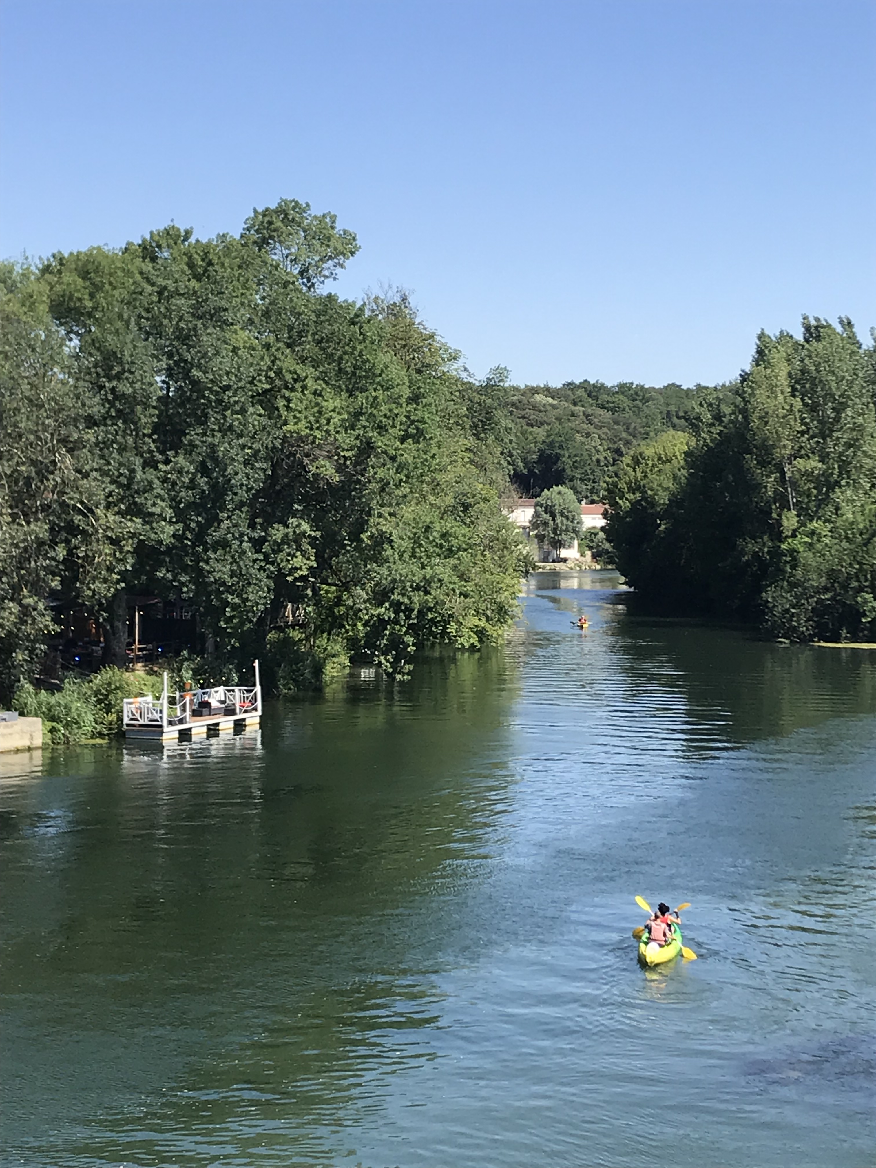 We did have another tour booked, this time at Courvoisier at Jarnac, about 15 minutes outside Cognac itself, but as this was on the way to our next stop Bordeaux, we were doing this en-route the following morning. So this left us with pretty much a dead day. Cognac is home to many distilleries, lots of small local producers as well as the big names, but not a great deal else to do, with my tourist hat on. So, having packed our picnic rucksack, we went to the local supermarket, stocked up on du pain, du vin and du boursin, plus some florantines, and headed for the river, past the Hennesey factory which is right on the banks. There is a chateau there, you can do the tour, but guess what they make there too? You’ve guessed it!