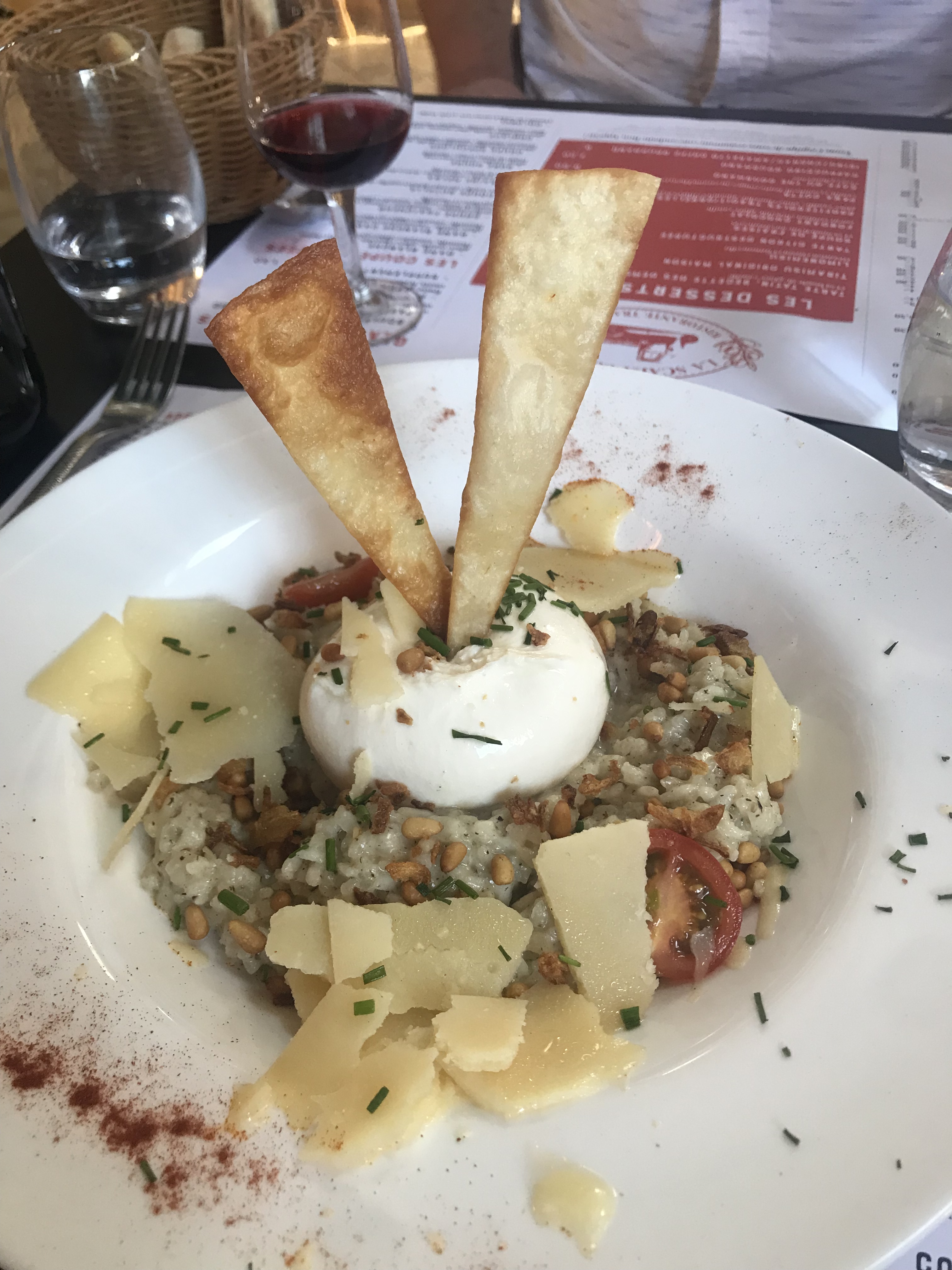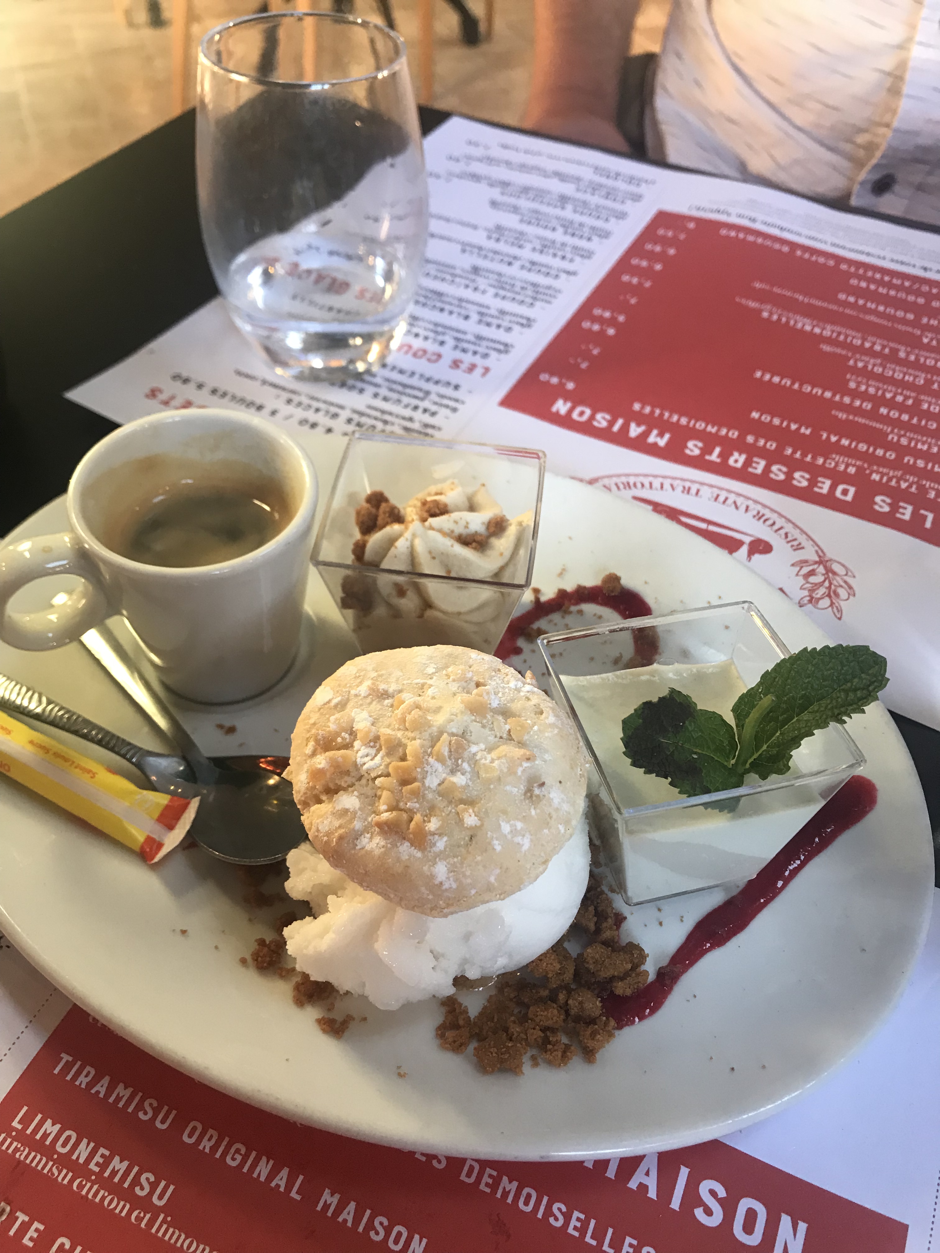 Food was a mixed bag, my starter, a salmon tiramisu was fab, and the main, a risotto with pine nuts and super fresh mozzarella, was also great. The desert is where things went tits. We ordered Café Gourmand to share, the lemon sorbet served on crushed ginger biscuits was the star, but a mini tiramisu that tasted like off-milk, and a mint panna-cotta, that you could have bounced, eek! A real shame but otherwise, a great meal. Special mention to the 3 loud Brits, oh the shame of my fellow countrymen. Bellowing with no indoor volume control, all about how he was at a urinal in a strip club in Vegas….. Then, how I quietly judged as what I think was his slightly sheepish brother, told him not to order La Chouffe beer (one of my absolute faves) because it might be a bit too strong for him. Snigger. The textbook definition of all mouth and no pantalons.