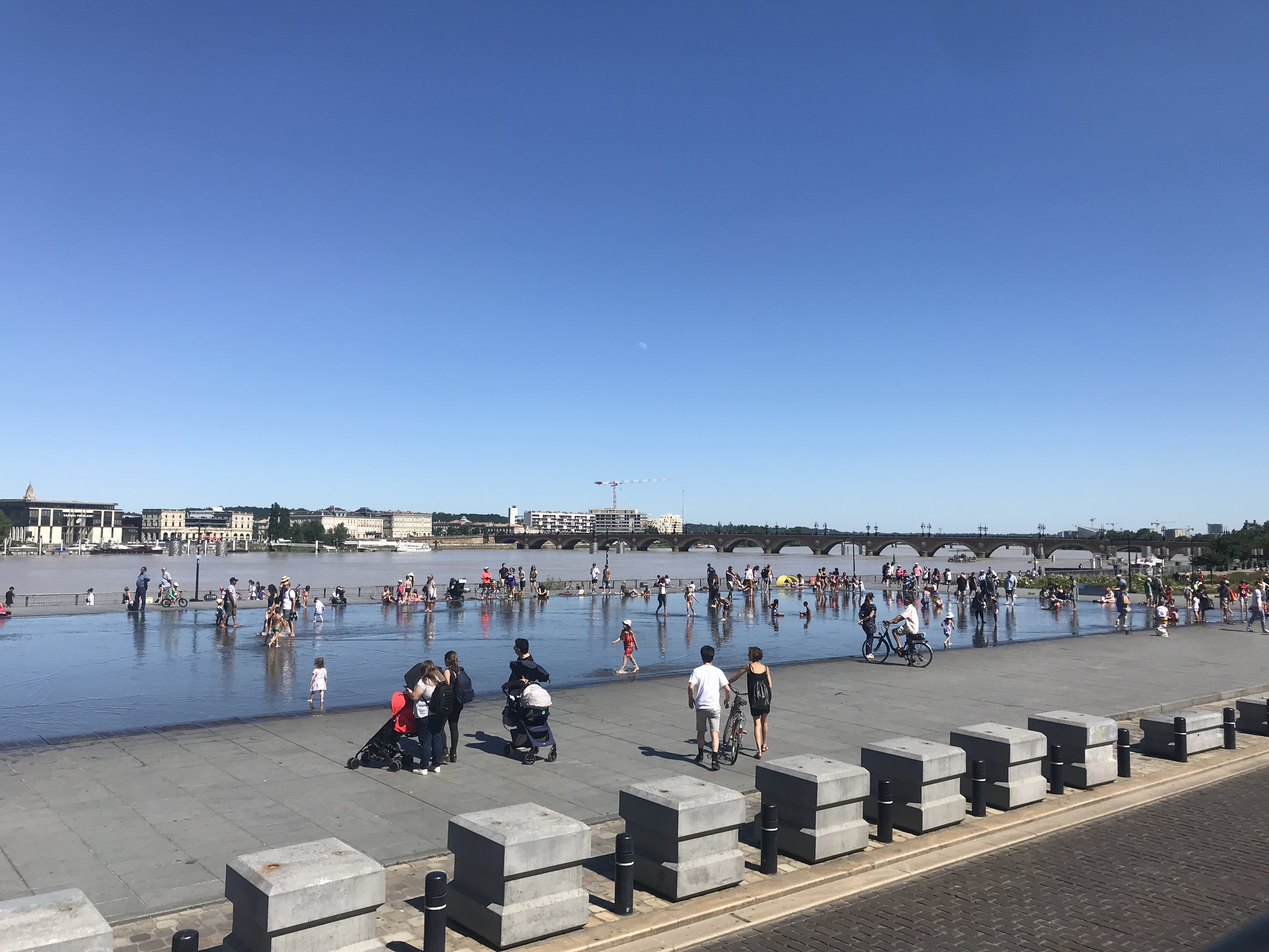 Next the Place de la Bourse and it’s famous Miroir D’eau fountains, that are either like a mirror pool of glass, or can produce a 2 mtr high fine mist. It’s a place for young and old to come and cool off in the heat of summer. You can get a spectacular photo here when the fountains are quiet, as it reflects the building in mirror image in the shallow pool, but sadly had no time to come back.
