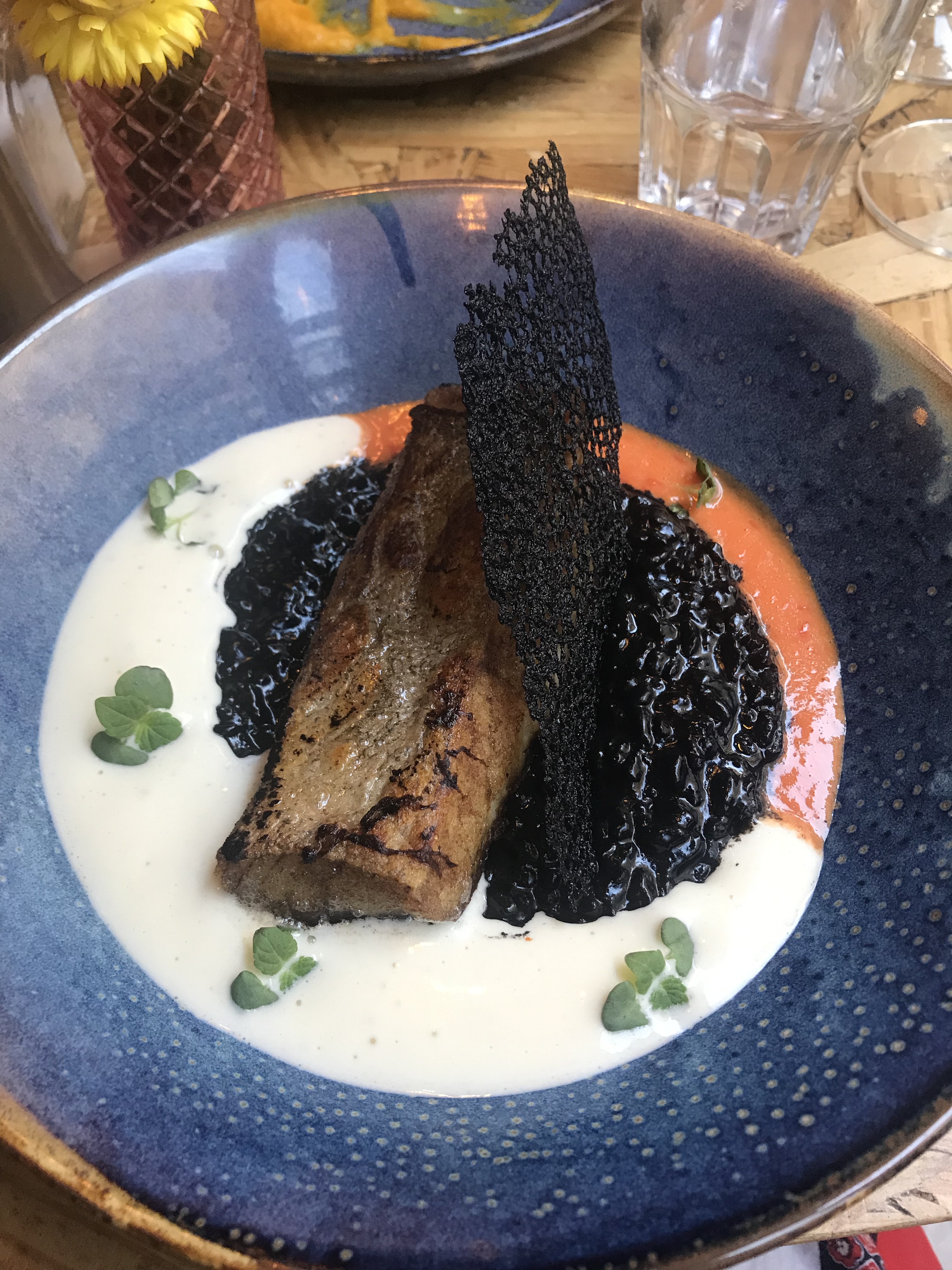 The highlight of our first day though, was definitely the meal we had in the evening, at a small, unassuming restaurant called Le Troquet that my husband had found. Despite confusion with the menu translation that led to me ordering Gravelax thinking it was fish, and a beautiful beef dish arriving, which I couldn’t then eat, they took it away, replaced it super fast with the risotto of dreams, and wouldn’t allow us to pay for it. The best risotto of my absolute life, and worth walking around Bordeaux with squid ink teeth, resembling a member of the ensemble cast of Les Miserables.