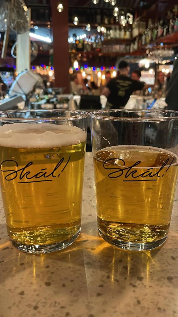 We took ourselves off to Hlemmur Food Hall, a few minutes walk from the hotel for something to eat and a quick drink before crashing very hard. It was a lively place with a great atmosphere, lots of twinkly lights and little bars and restaurants all within, surrounded by communal seating. You could choose from pizza, tacos, Vietnamese pho, fish and chips and various small plates inspired by Icelandic local ingredients. Lots of craft beer and I really liked it. The sort of place where anyone was welcome and the giant gentlemen sat next to me resplendent in a fabulous full skirt with pink petticoats was testimony to that. It felt inclusive, safe and welcoming. This is nice.