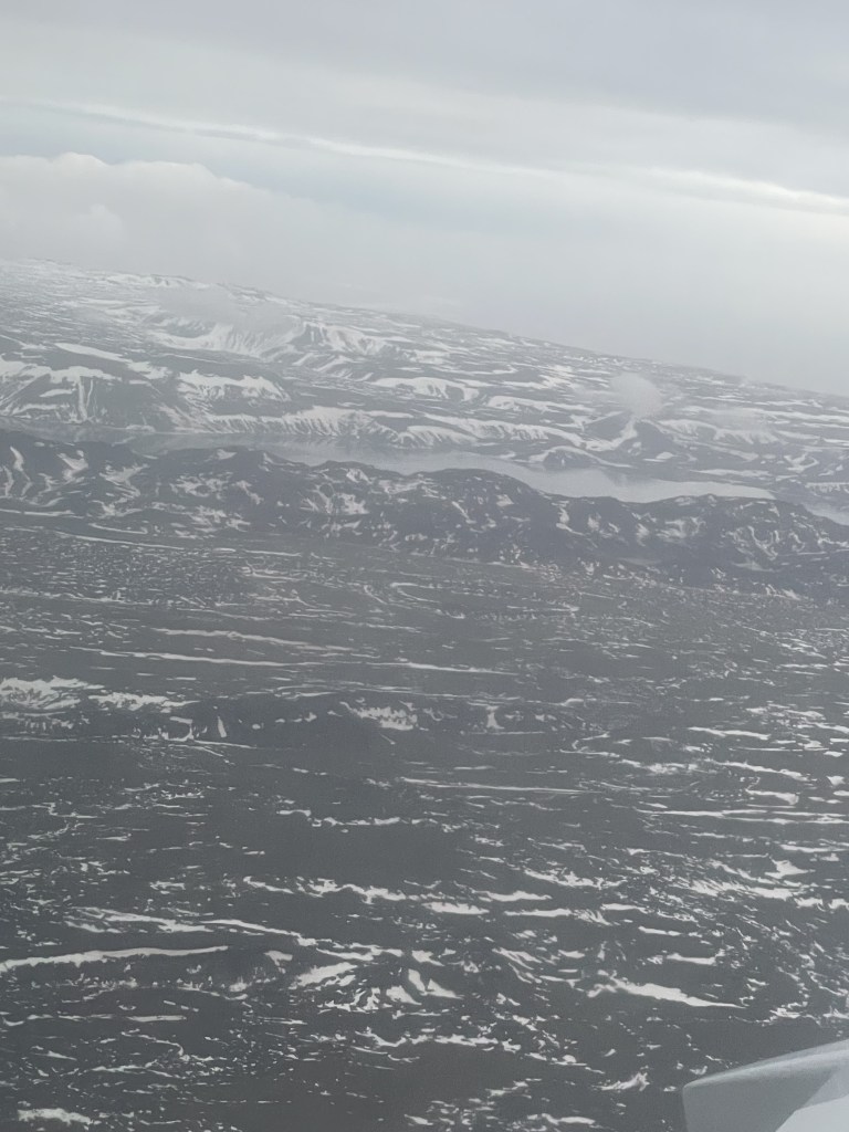 When we finally punched through the clouds on our approach to Keflavik airport, it was just wow. Rivers of black rock capped with ice, and a landscape that was just other-worldly.