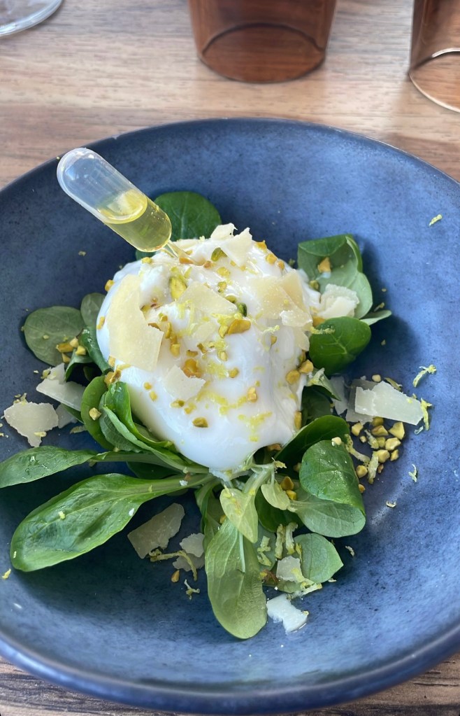Starter was Burrata with lemon zest, pistachios and a pipette of olive oil. I am totally stealing this and passing it off as my own invention.
