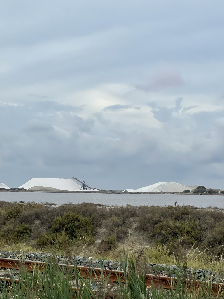 The salt marshes are impressive, although I was expecting them to be more pink, rather than pinkish grey, and the piles of salt are on a hugely industrial scale, like looking at a mining operation.