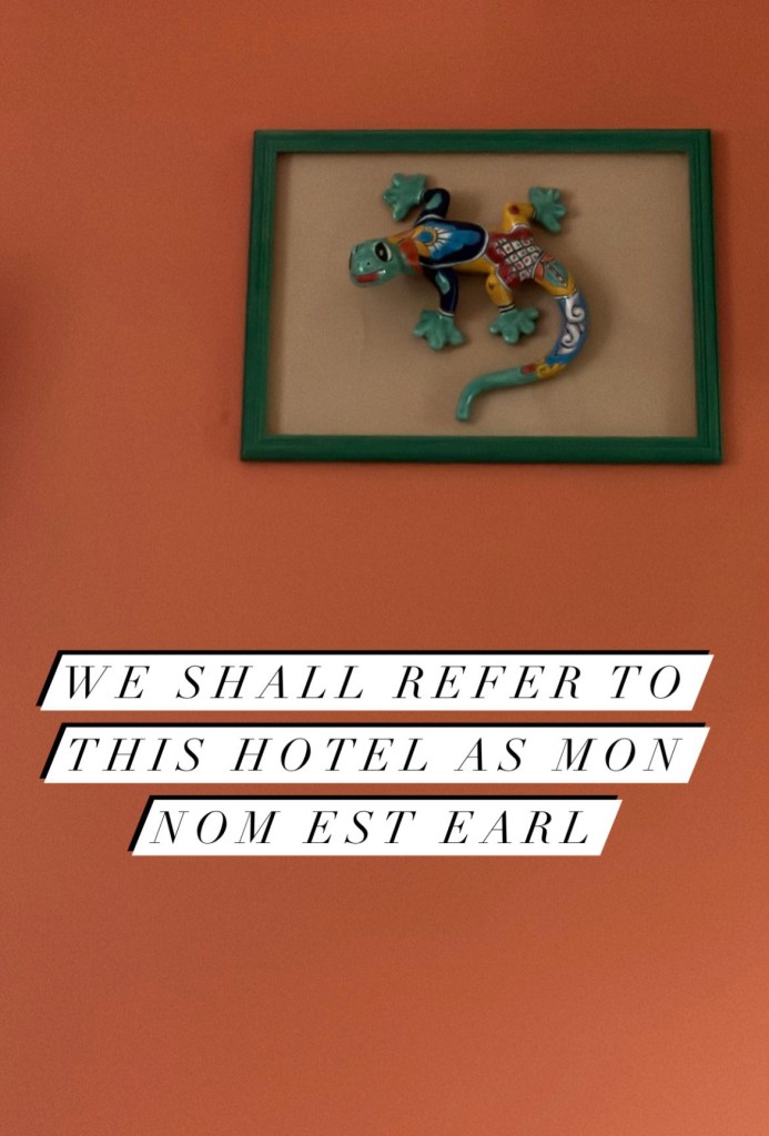We’re back in our “My Name Is Earl” hotel for the night in Aigues Mortes, our last night to break up the journey onwards to Nice where we are headed tomorrow. I knew this one was going to be a bit of a wildcard. There are neon flamingos. Rooms are painted in what I would affectionately call Dysentry Apricot and there is one plug socket. Everywhere I look something looks back, from a wall mounted gecko (quite like him), to a large painting of white Carmargue horses above the bed. The bar of bathroom soap is the actual size, to full scale, of a single piece of Caramac. The air conditioning however is absolutely top notch and given the humidity and size of my hair right now, that is all that really matters.