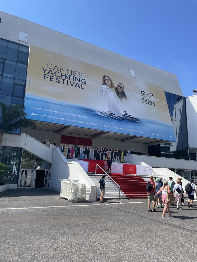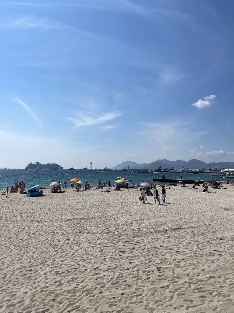 We walked for a while, and kept being thwarted by high rise buildings and construction to get to the sea. When we finally managed it, it’s a bit overwhelming, There was a cruise ship in the middle distance, and the sea was absolutely crammed with boats and people and it was all a bit much. The beach area is pretty small really, and what isn’t taken up with parasols and loungers for hire was rammed with people. We walked down the promenade, and couldn’t really get very far because it was Cannes Yacht week, so much was cordoned off unless you had ticketed admission, and covered with small tradeshow tents so you couldn’t see any of the boats really. Just around the corner there’s the famous red carpet used by the stars for the Cannes film festival. They’ve helpfully popped a cardboard cutout of a lot of A listers at the top, but is it really worth the effort to come to this place to take a picture of a cardboard Jennifer Lawrence? I reckon not.