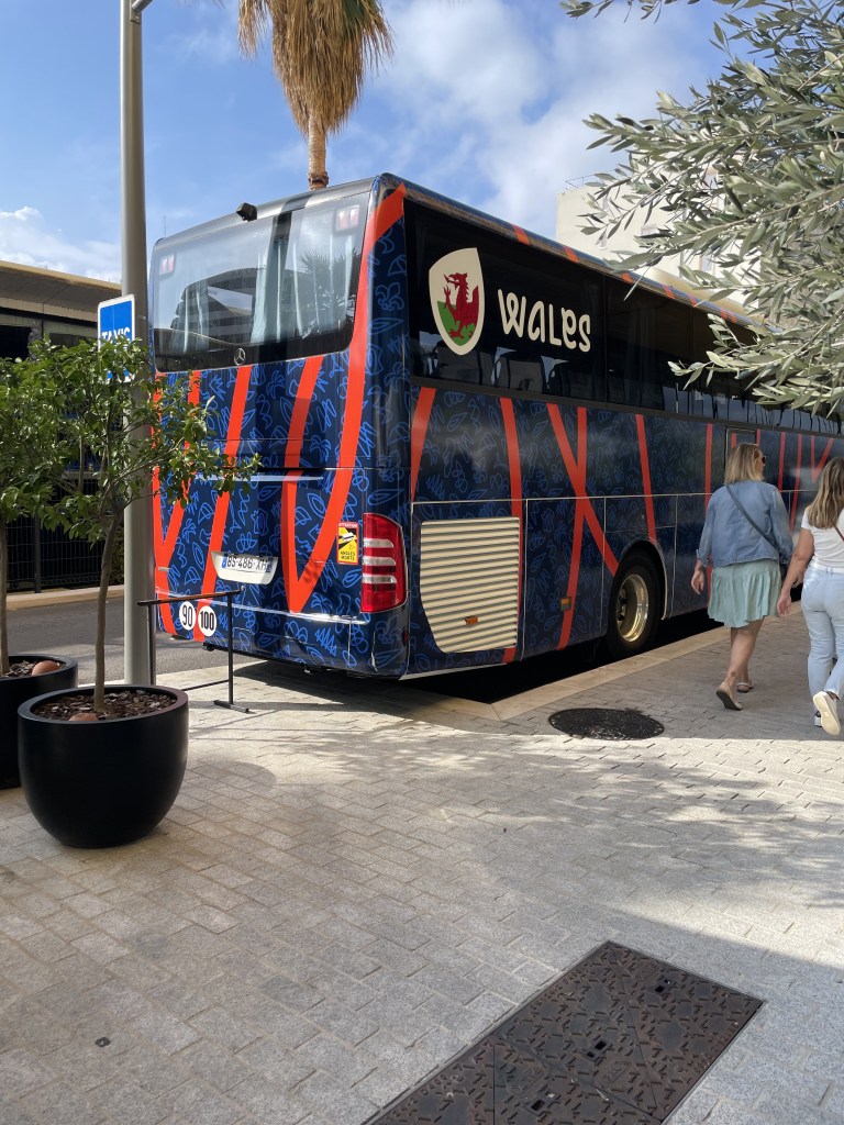 On the way out the next day, (the hotel, not the Irish Pub), we noticed the Wales team bus was parked at the hotel next door. Yep, we’ve found the team hotel, and we had literally just missed them. We tried to get a coffee but we were told we couldn’t until after 12 as it was reserved for residents until then. Dammit! We would continue our stalking at a later time!