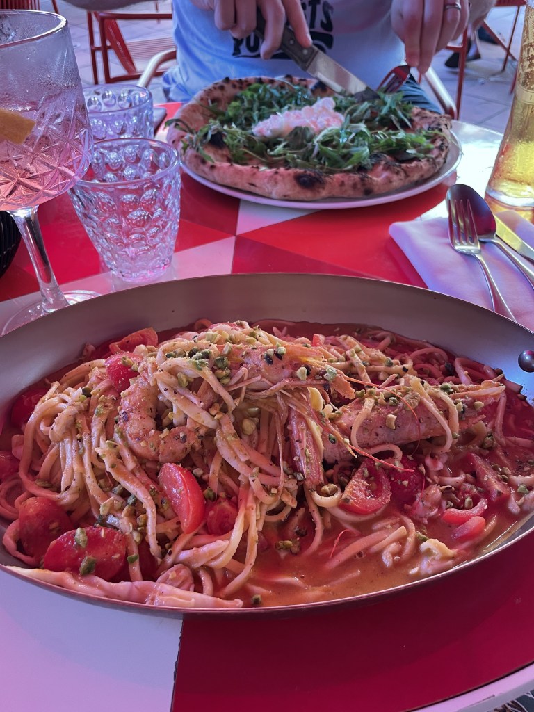 Lunch was Italian, Craig had a huge pizza with Burrata, and I had a seafood pasta with calamari, and giant langoustines. Both way too massive, but great! Plus my favourite drink of the trip, a “Lady Spritz”, which was like an aperol spritz but with rose liqueur instead.