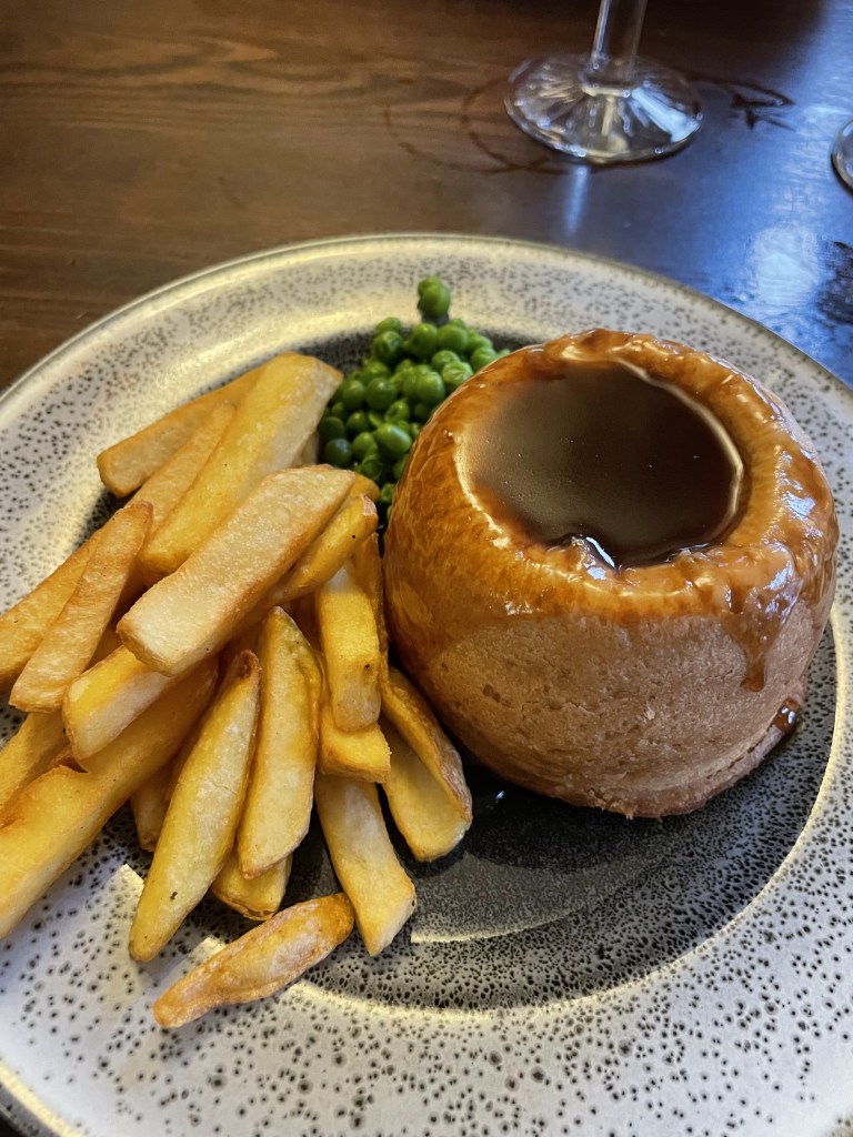 Our first night, we had dinner at one of our favourite local pubs with the fam. Steak and Kidney suet pudding and chips – yes please! I cannot remember the last time I had any sort of steamed pud, savoury or otherwise and I was a very happy sausage.
