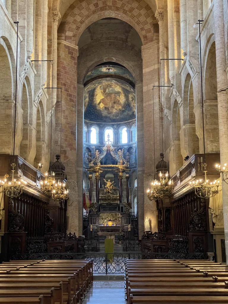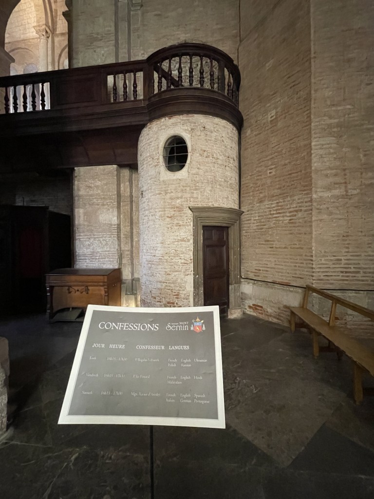 First place of interest was Basilica Saint Sernin, the foundations of which date back to the 4th century. It’s on the Compostella de Santiago pilgrimage route (as is our house), but it’s a pilgrimage site in its own right as it is crammed to the gills with reliquaries. You know I love this stuff but sadly, while I could see them all tantalisingly close in their little golden boxes and cages, I couldn’t get close enough to see what bits of what saints were contained within. I am the same little 8 year old that had her face pressed to the mummies glass cases in the British Museum. There were lots of lovely atmospheric nooks and crannies in here, and some fabulous artwork, the canopy over the alter is something else.