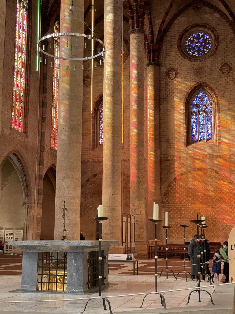 Next was the Jacobin Monastery and cloisters, and oh my! We were both chatting away as we walked through the doors, and we just fell quiet at the beauty of it. The ceiling height, the light on the stone through the stained glass windows in full sun was gorgeous.