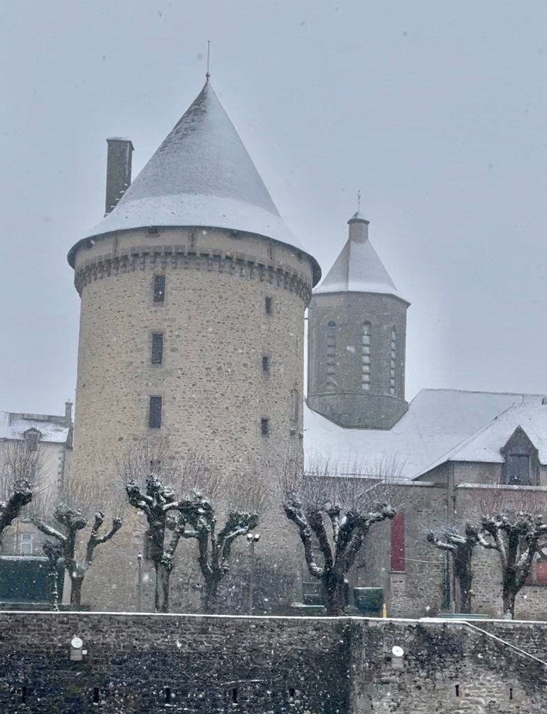 Part 2… I really must stop writing stuff and just letting it sit in drafts…. Morning again. We had surprise snow over the weekend, which was a delight. I watch the forecast generally like a hawk but there was no sign of this, then bam! a yellow weather warning for Creuse for snow and ice out of nowhere. It snowed solidly for hours, but it just wasn’t cold enough for it to stick properly and by the evening of Sunday it was all gone. It did lead to a very very lovely weekend though. The sort of weekend where you don’t really do that much but it was just perfect. We went into our local town centre for an appointment which I’m not going to share the reasons for just yet, but it was exciting and interesting and fun. The snow was really coming down and Zizim tower, (our local medieval prison obvs), looked magical. We walked down to our favourite bakery, and ate pain au chocolates walking back through the blizzard. A quick dash to the supermarket where we did what has been previously referred to as a toddler shop. Was mainly booze, snacks and if memory serves some celery (inserts shrugged shoulders emoji). The weekend was full of 6 Nations Rugby which I’m already missing, and yes Wales were terrible, but it was to be expected and still some amazing rugby. Thoroughly enjoyed all of it. Lit a roaring fire, listened to some podcasts while the snow came down.