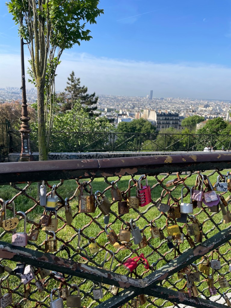 Earlyish morning before the crowds properly descend onto Montmartre is an absolute treat. The views over Paris are stunning, the love lock fence, and blue skies behind Sacre Coeur, are so beautiful I could actually cry. As we sit on the steps and kill some time before saying goodbye we witness a fitness influencer and boyfriend taking photos with the view of Paris in the background. This involved a series of high-kicks, some yoga poses, and good god the vanity was hilarious. We actually hurt our eyes from rolling them. I wondered which I’d rather have, that body or the bacon and hash browns I’d just had. Safe to say that I remain happy with my life-choices.