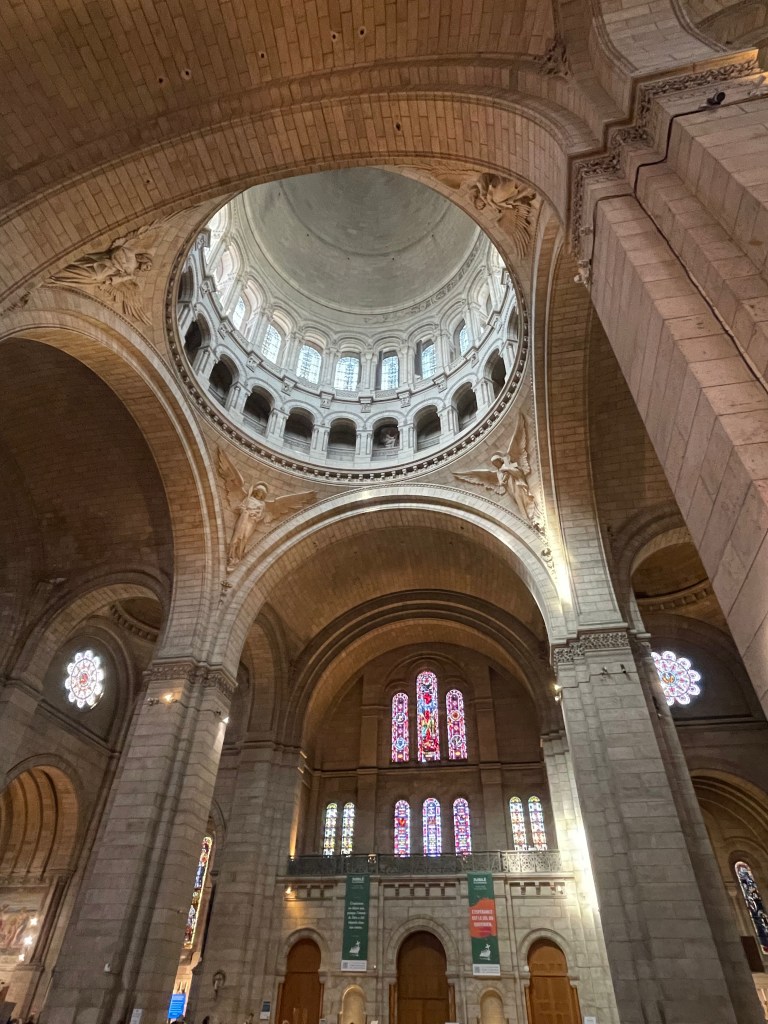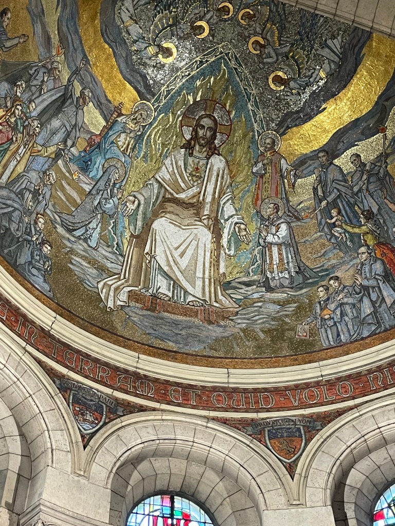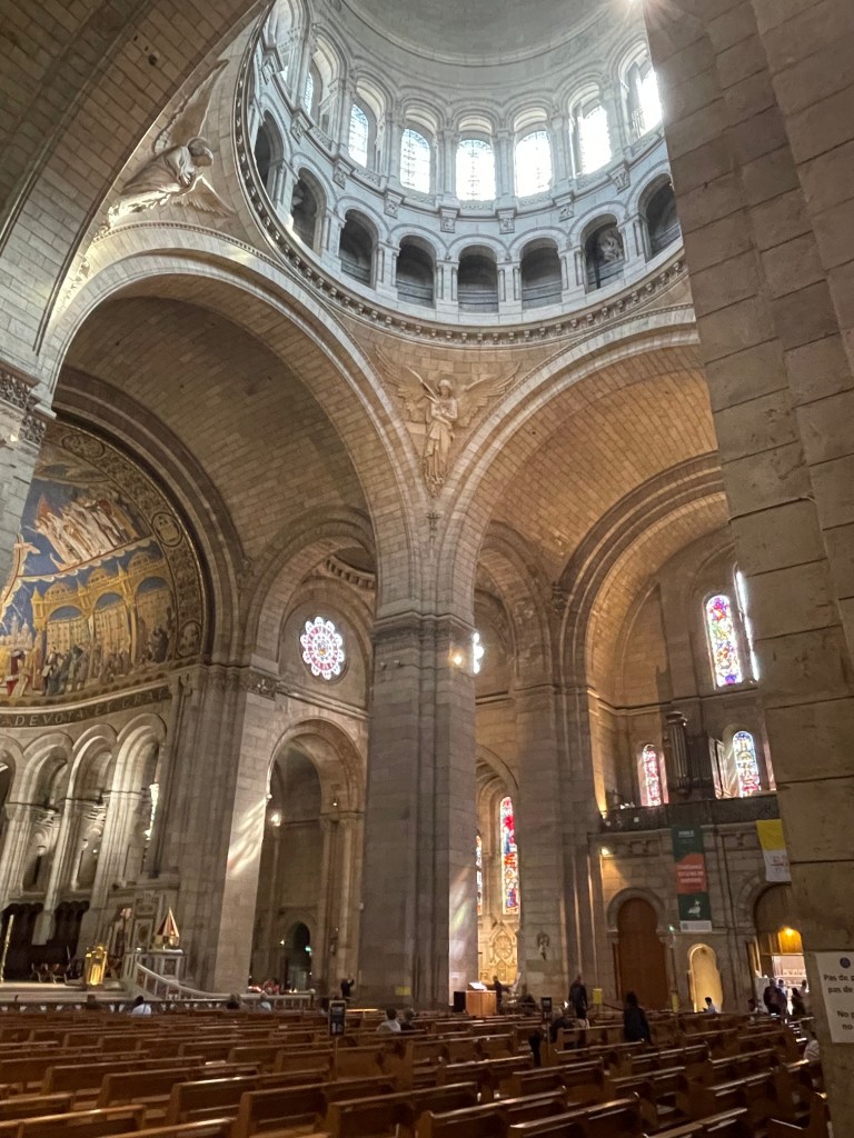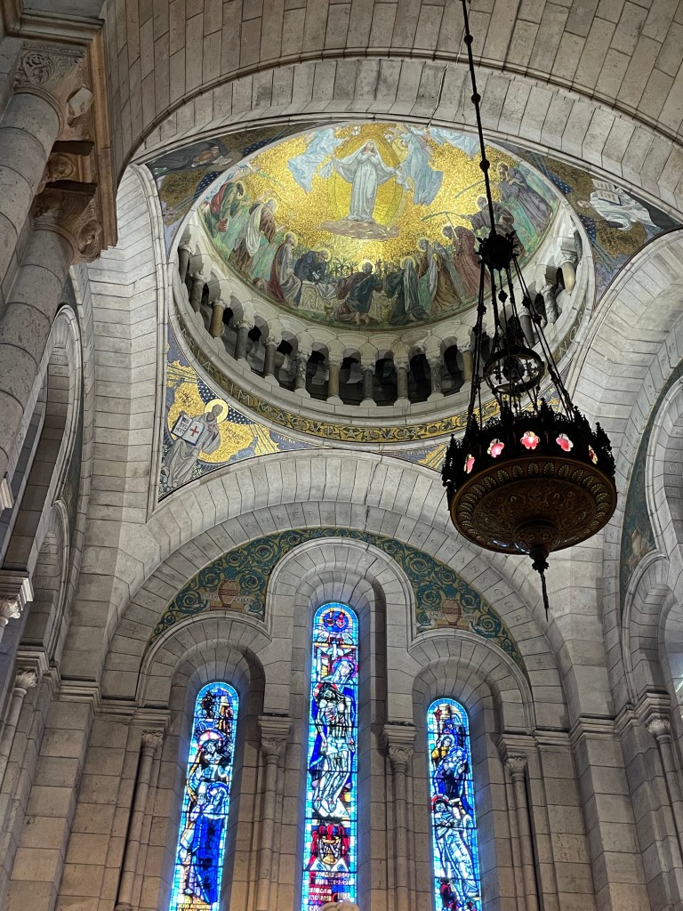 With Jen packed off into an Uber, I skirted the scam artists which were starting to appear on the church steps. Beware anyone slapping a bracelet on you and then insisting you pay for it. I maintained a zero eye contact policy until I was safely in the queue. It’s lovely that Sacre Coeur is free to visit, I think you only pay if you want to go to the roof for the view, which given the view was pretty great anyway with the elevated position overlooking Paris (all those Montmartre steps after all), I opted not to. It’s as beautiful inside as you might expect, the domed ceilings and murals and sculptures are totally worth seeing. The closest I’d been before was the view framed by the clock in the Musee D’Orsay, you know that photo that everybody that’s been there has.
