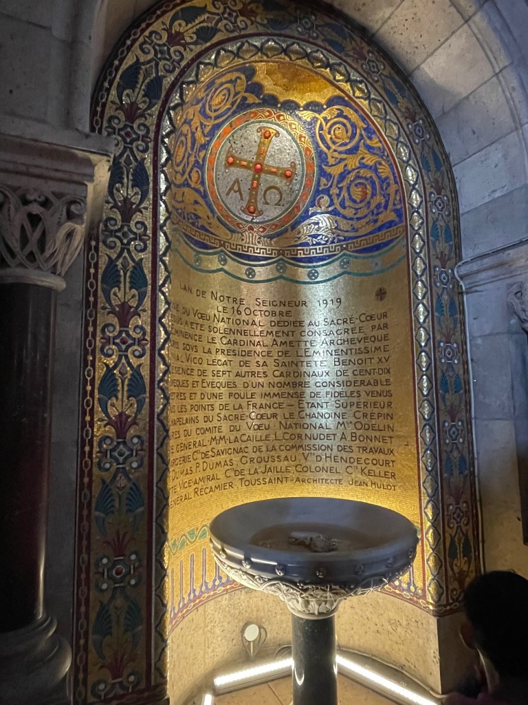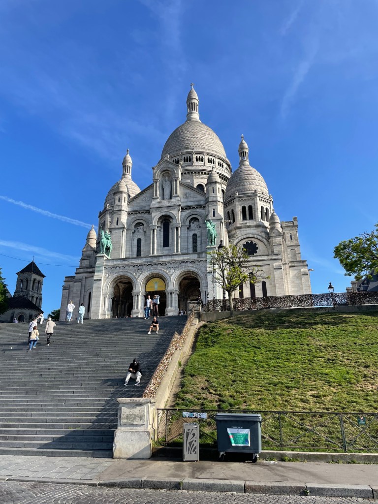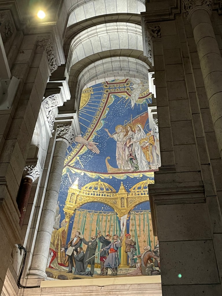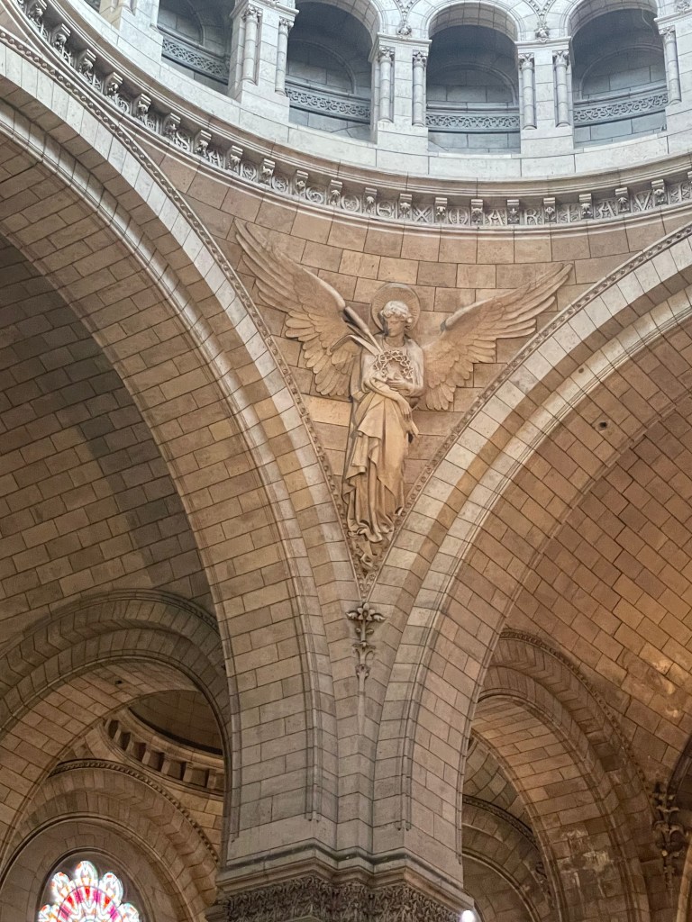 With Jen packed off into an Uber, I skirted the scam artists which were starting to appear on the church steps. Beware anyone slapping a bracelet on you and then insisting you pay for it. I maintained a zero eye contact policy until I was safely in the queue. It’s lovely that Sacre Coeur is free to visit, I think you only pay if you want to go to the roof for the view, which given the view was pretty great anyway with the elevated position overlooking Paris (all those Montmartre steps after all), I opted not to. It’s as beautiful inside as you might expect, the domed ceilings and murals and sculptures are totally worth seeing. The closest I’d been before was the view framed by the clock in the Musee D’Orsay, you know that photo that everybody that’s been there has.