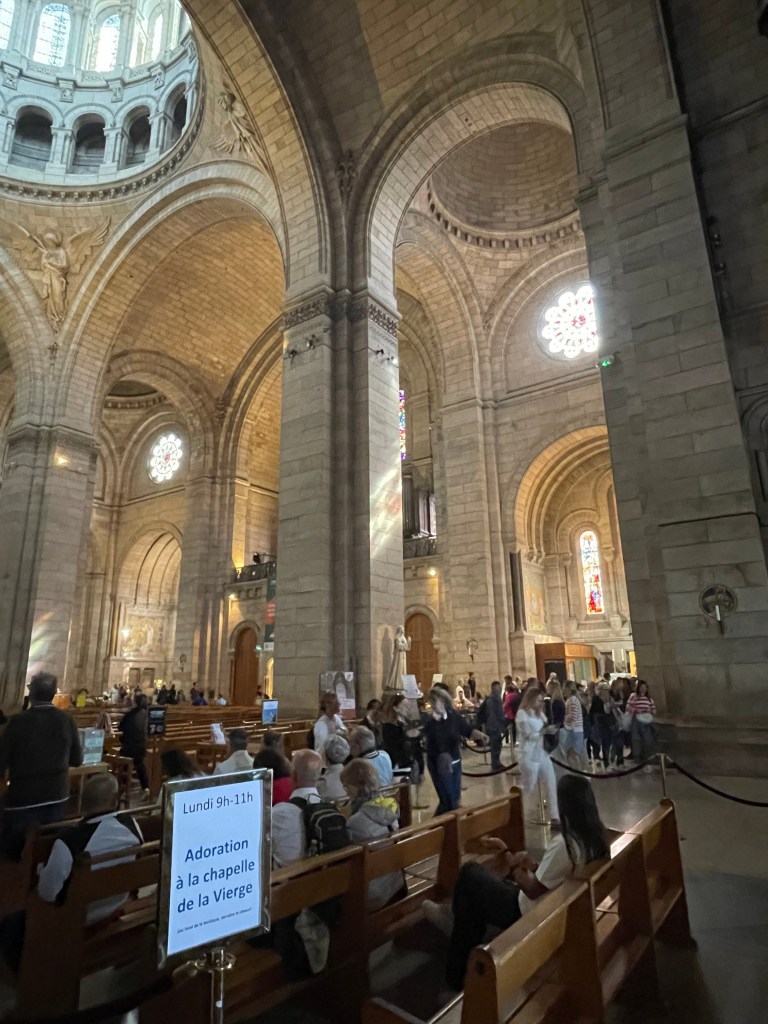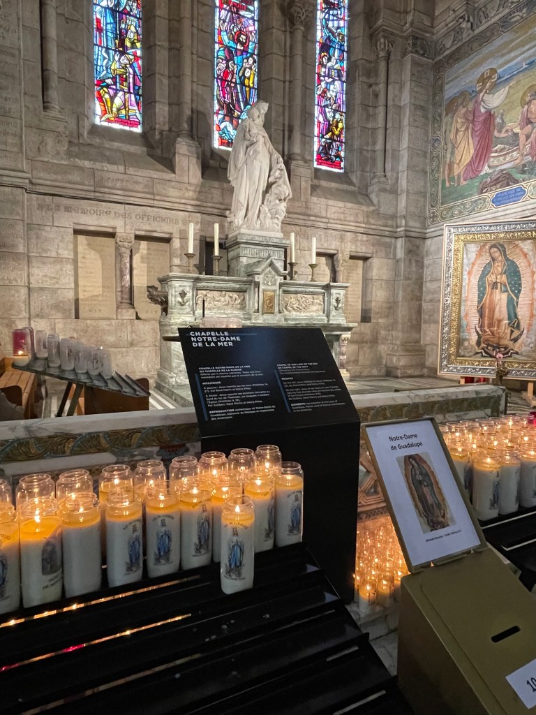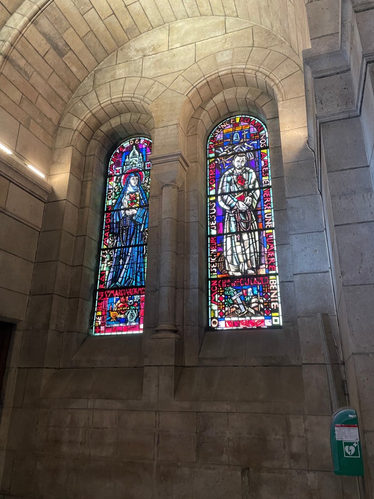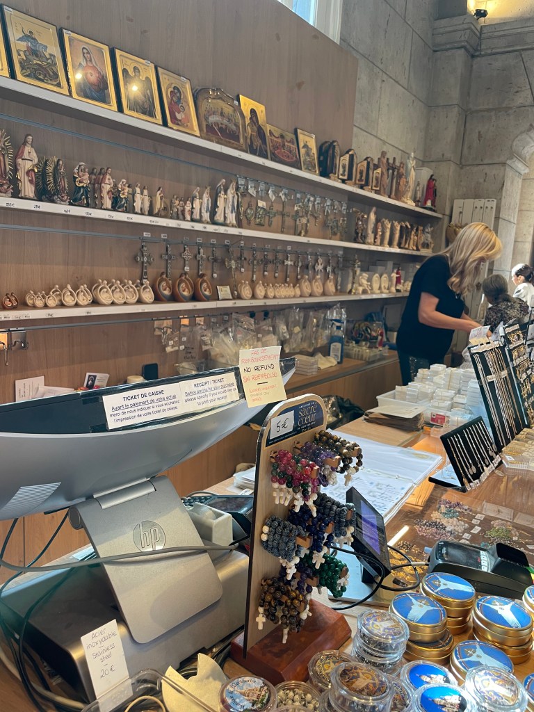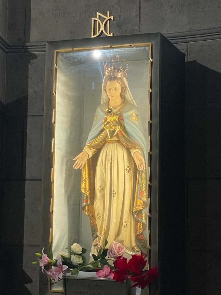 I had a leisurely wander, and a mooch through the extremely overcrowded gift shop filled with a lot of religious ephemera as you would expect. I bought a tiny charm that I thought would fit on a necklace I have. I enjoy the symbolism of the heart with a crown or flames, which I believe is called an ex-voto. I have a couple of these in brass on my kitchen wall, and a disco ball mirrored version in my front window. I enjoy them aesthetically, rather than with any sort of spiritual connotation. I bought a small one here as well as the charm, and that is now on my hall door.