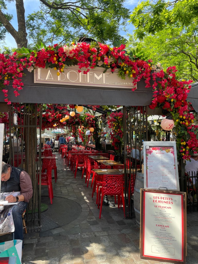Once I’d finished here I began to just wander the streets of Montmartre. I am fully in love with it all. The bohemian tree lined streets and street art, flower clad restaurants, artisan shops selling pottery or table linens. A saxophonist was paying some light jazz at the back of the church. I just adored it. If you’re a photographer of any sort, the beauty of it all means you can’t take a bad picture.