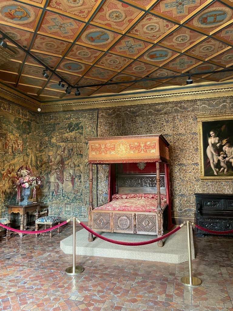 During her time at Chenonceau, Louise transformed the chateau into a personal sanctuary, marked by her profound sadness over the loss of her husband. It’s palpable when you enter her bedchamber, painted in black and curtains closed. For all its sombre decoration, theres something very beautiful about this space to me. Perhaps it’s my little gothic heart.