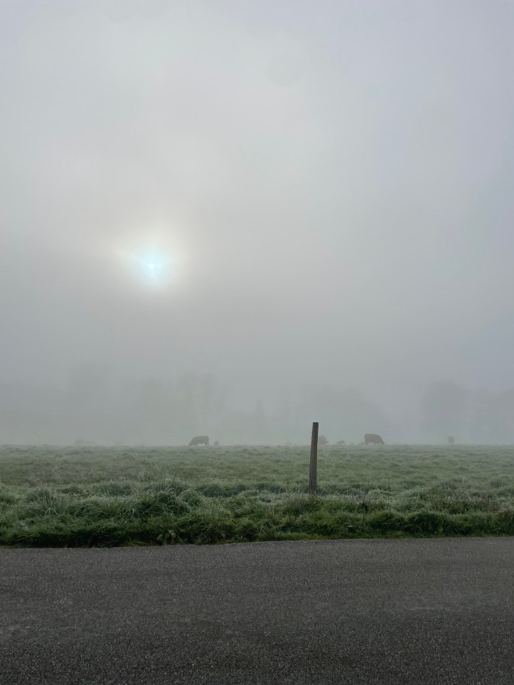 Afternoon all. Woke up to really thick fog this morning, and quite a heavy frost, but the sun was doing its best to burn through, illuminating the outlines of the cows in the field opposite. Red rose hips the only colour that wasn’t a shade of grey for miles around.